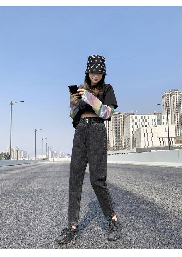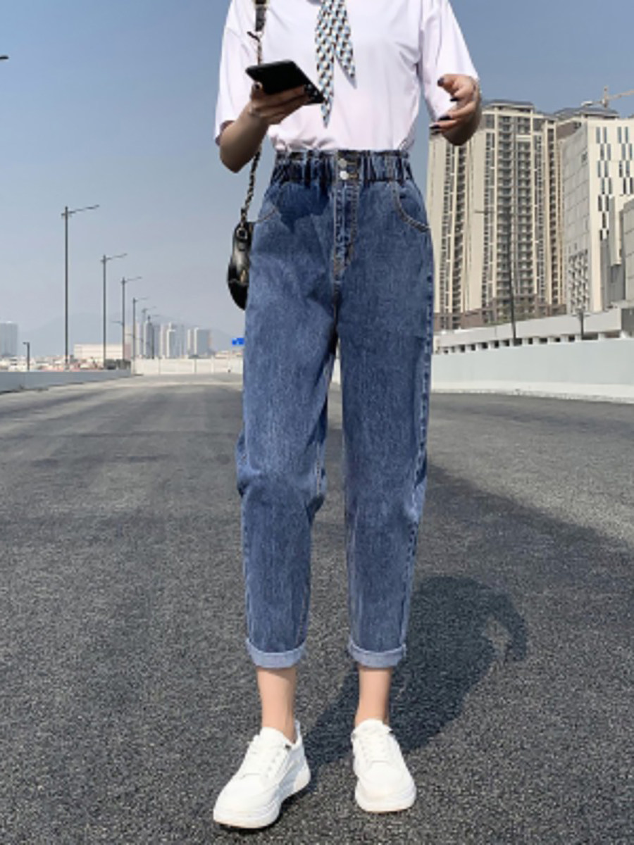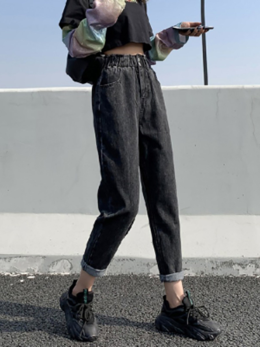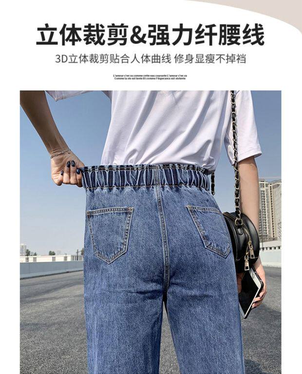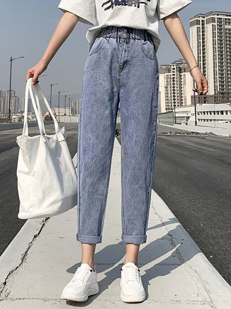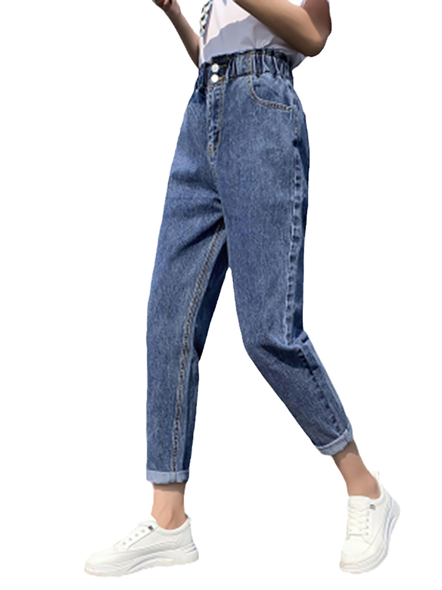 Штаны, приталенные джинсы, подходят для подростков, эластичная талия, свободный крой, высокая талия
