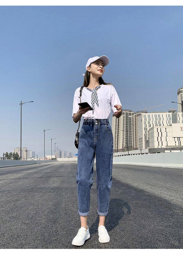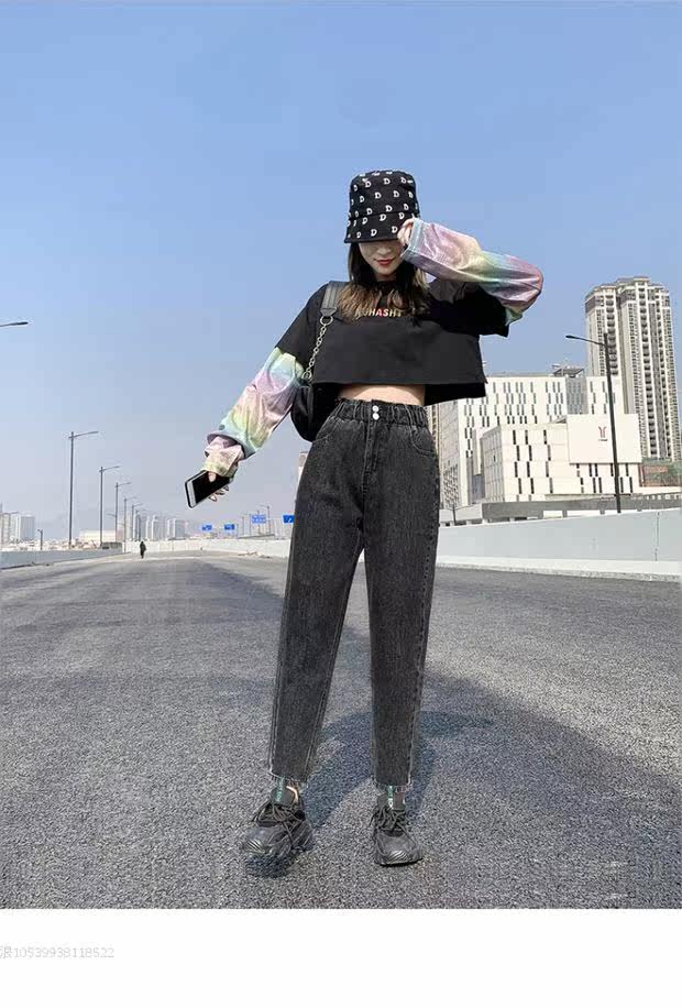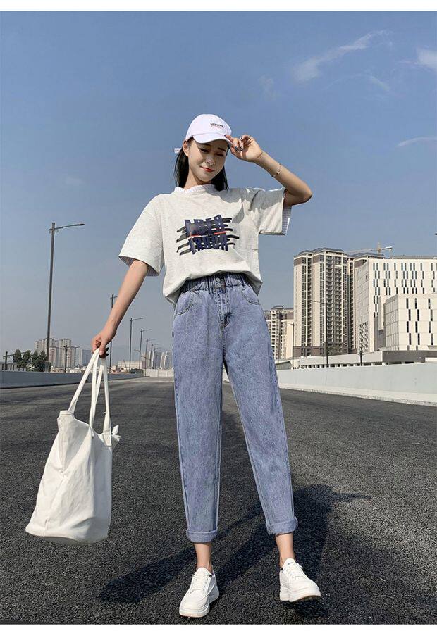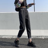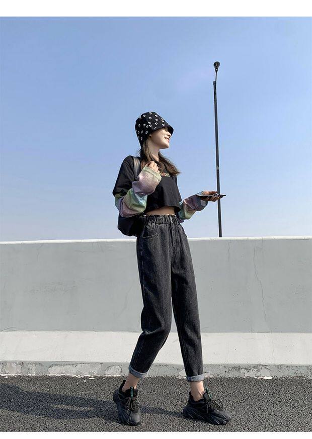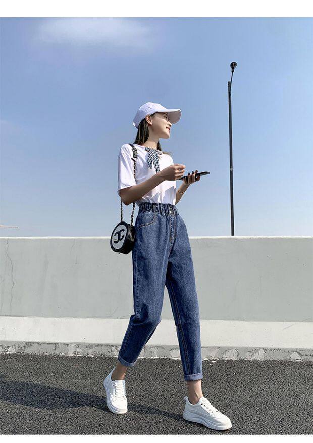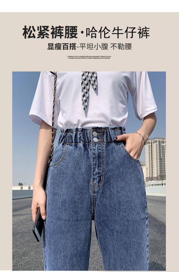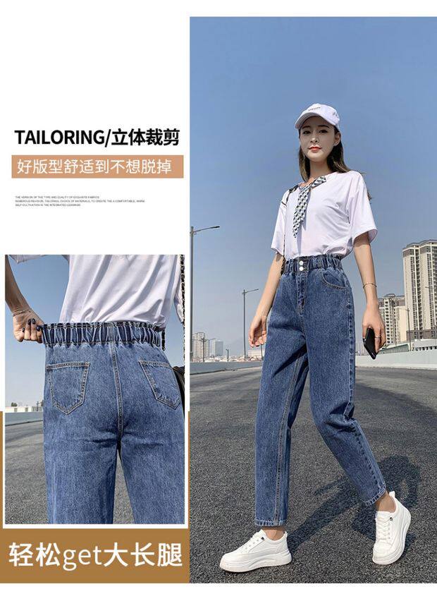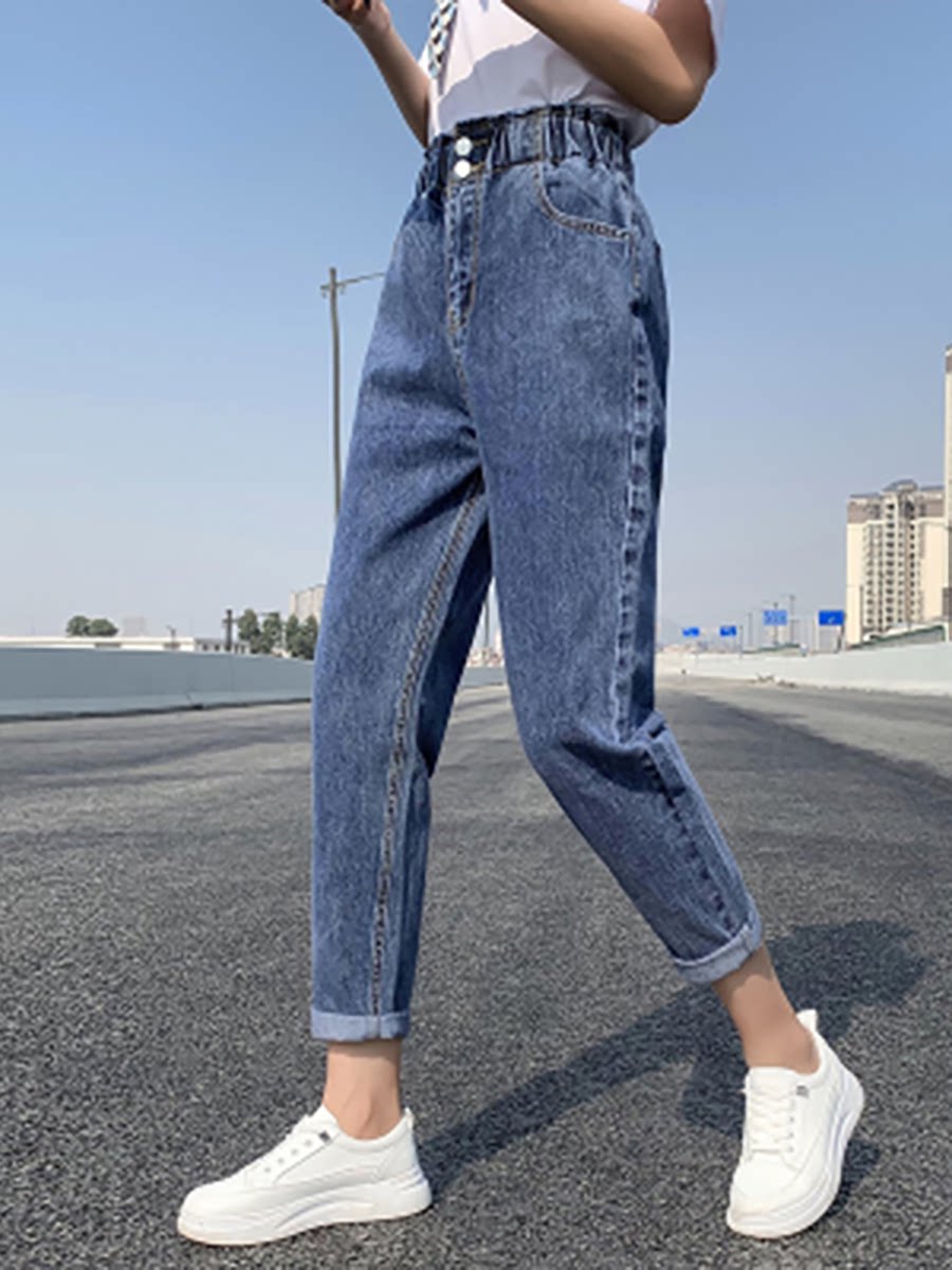 Штаны, приталенные джинсы, подходят для подростков, эластичная талия, свободный крой, высокая талия