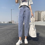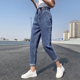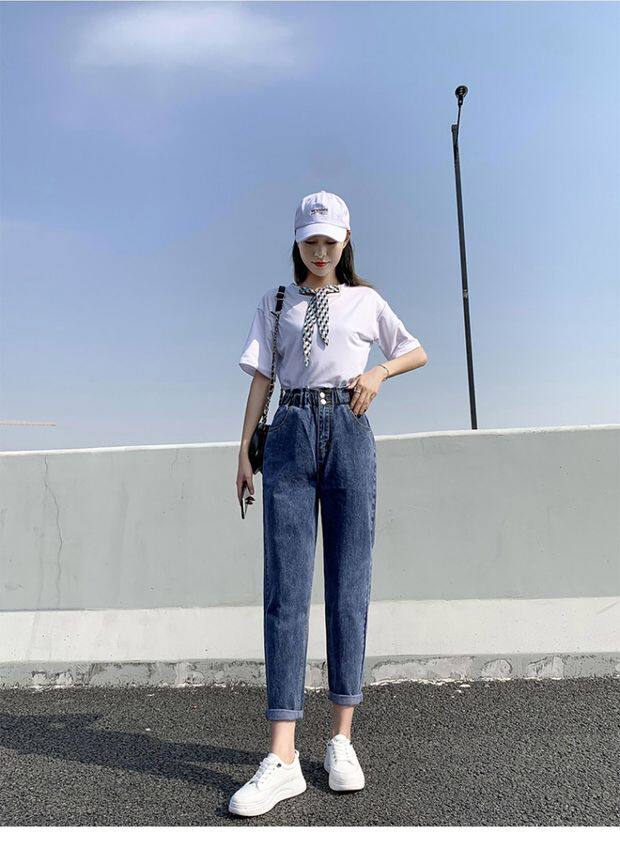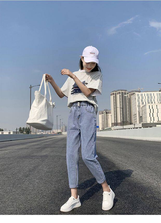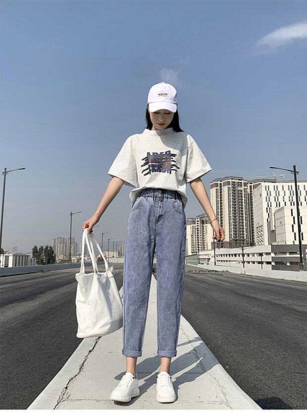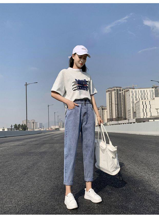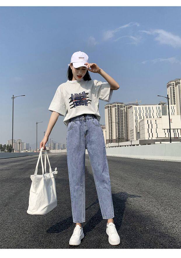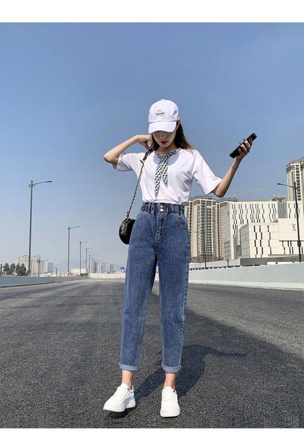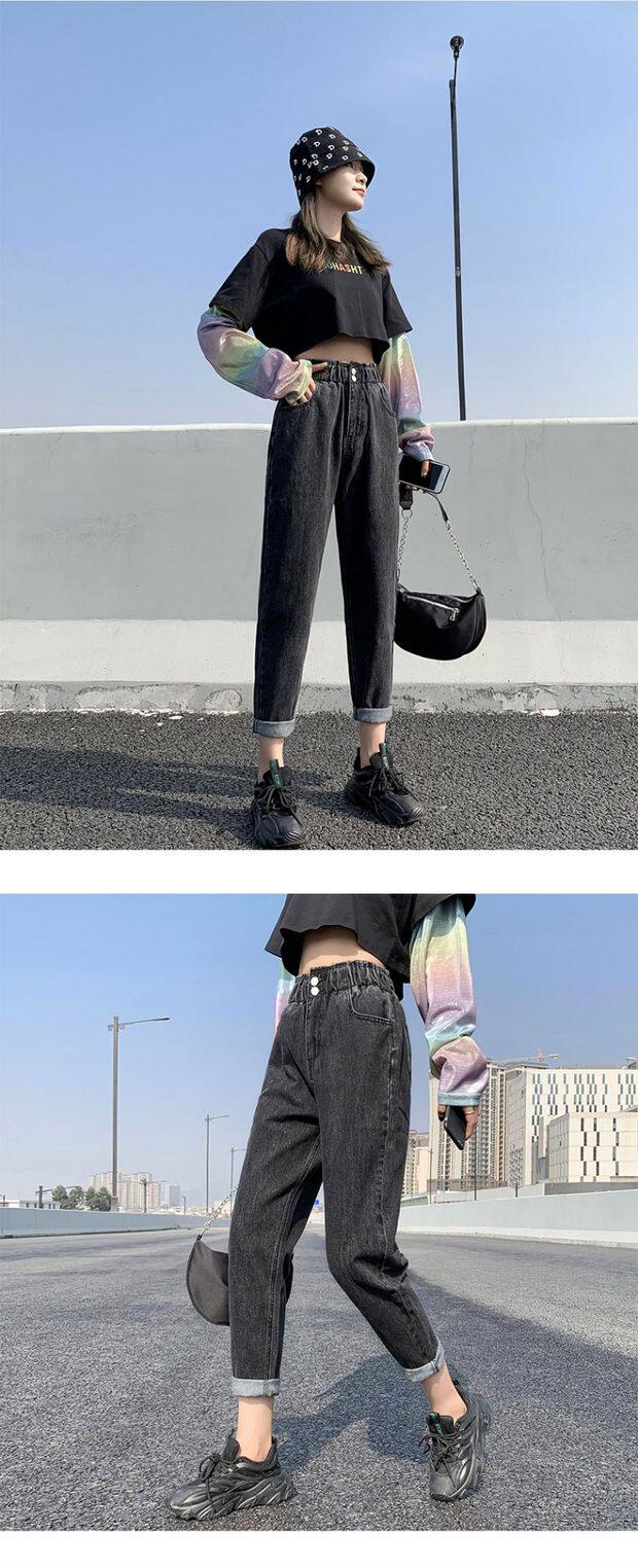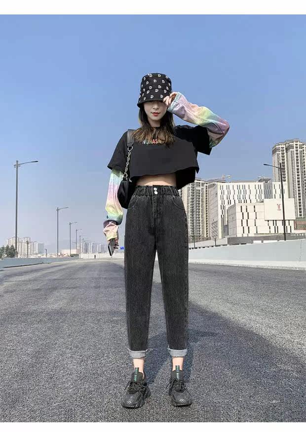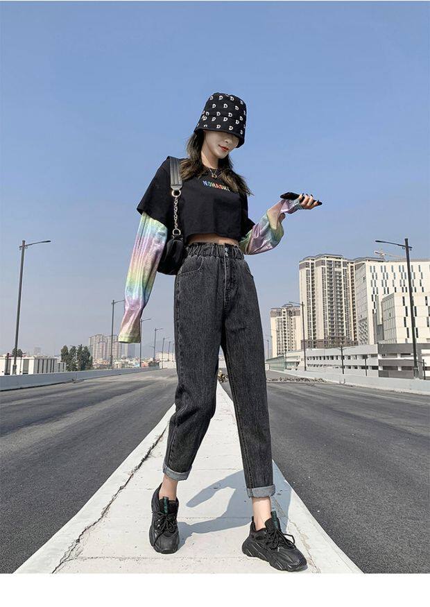 Штаны, приталенные джинсы, подходят для подростков, эластичная талия, свободный крой, высокая талия