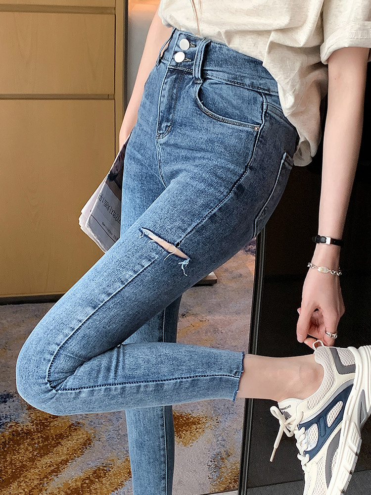 Весенние летние джинсы, модный приталенный универсальный утягивающий пояс на талию, карандаш, штаны, высокая талия, 2021 года, в обтяжку
