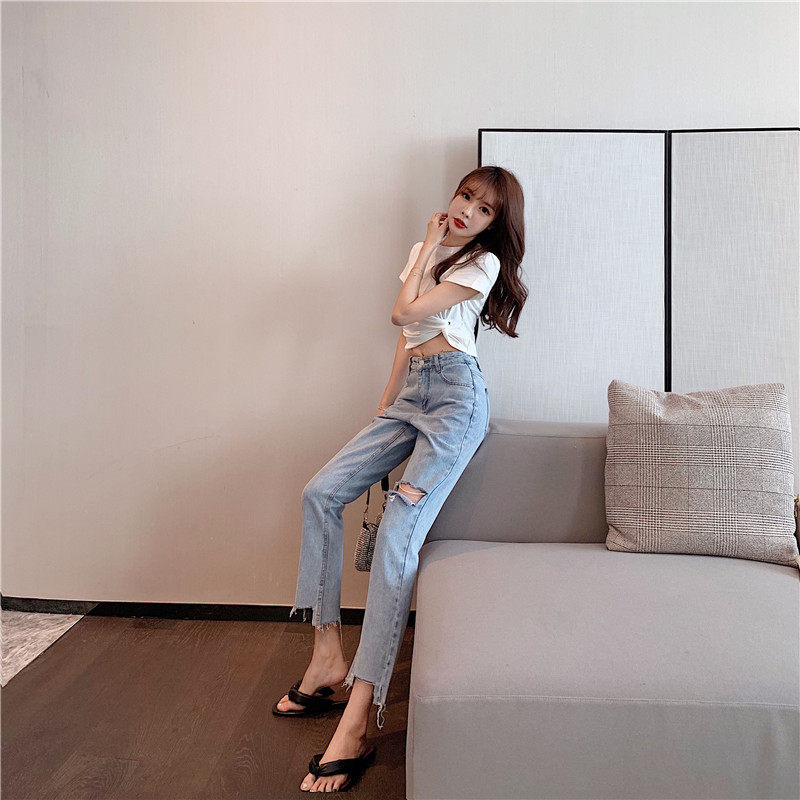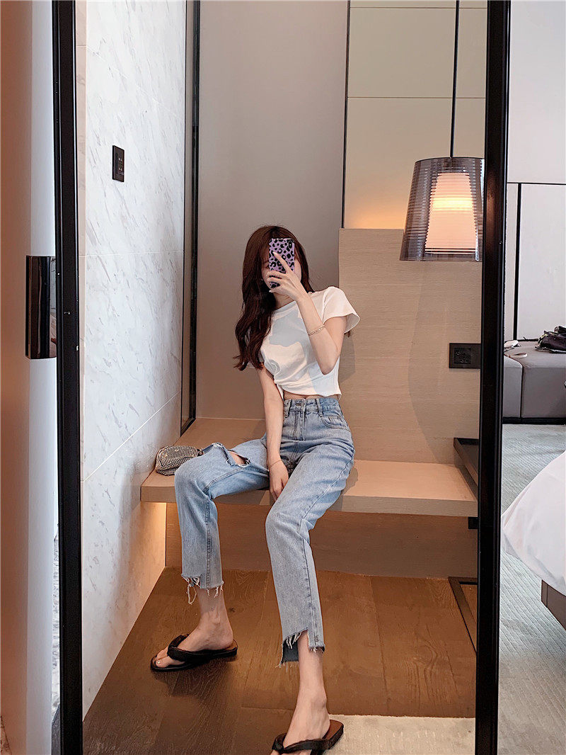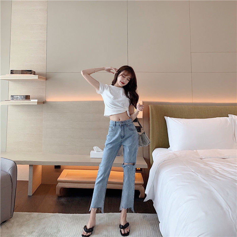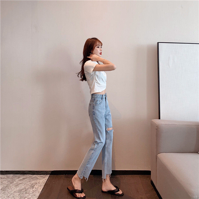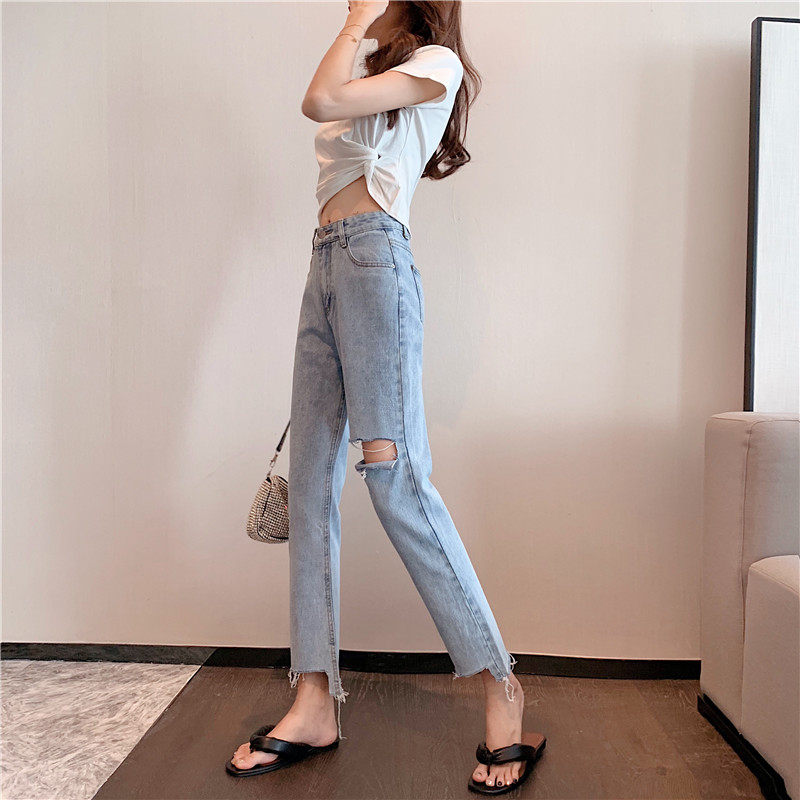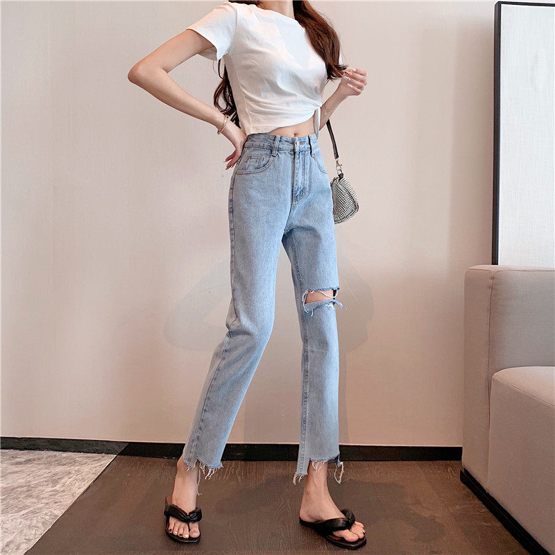 Джинсовые штаны, свободный прямой крой, высокая талия