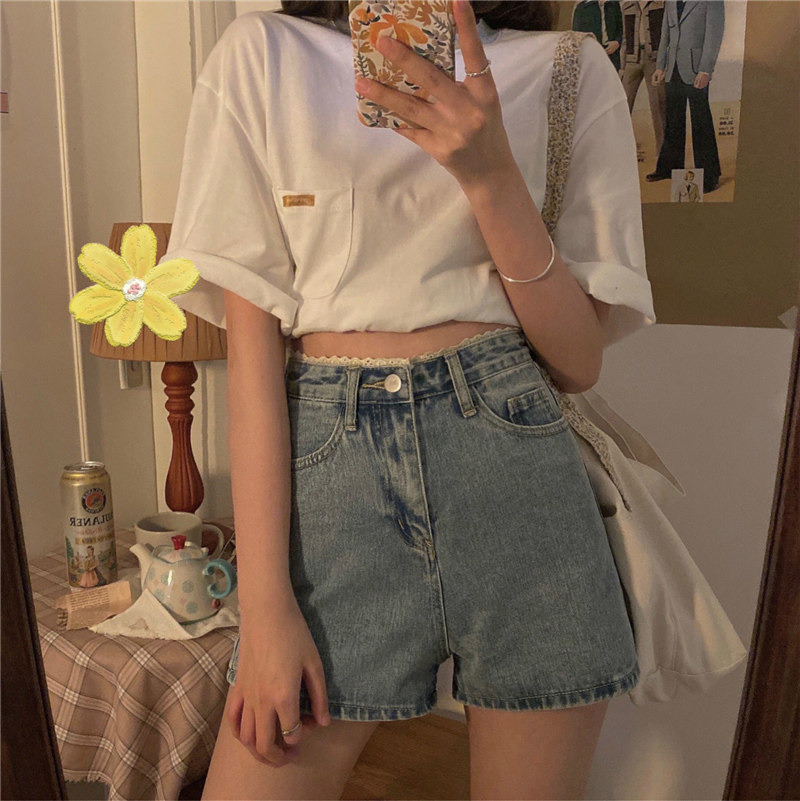 Джинсовая юбка, шорты, летние кружевные штаны, большой размер, высокая талия, свободный крой
