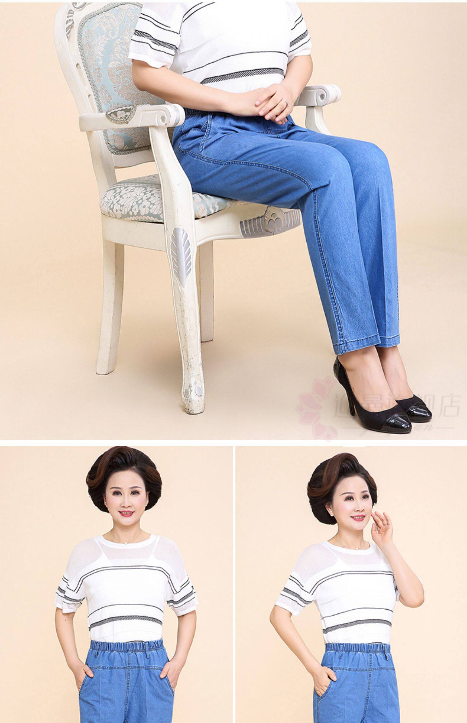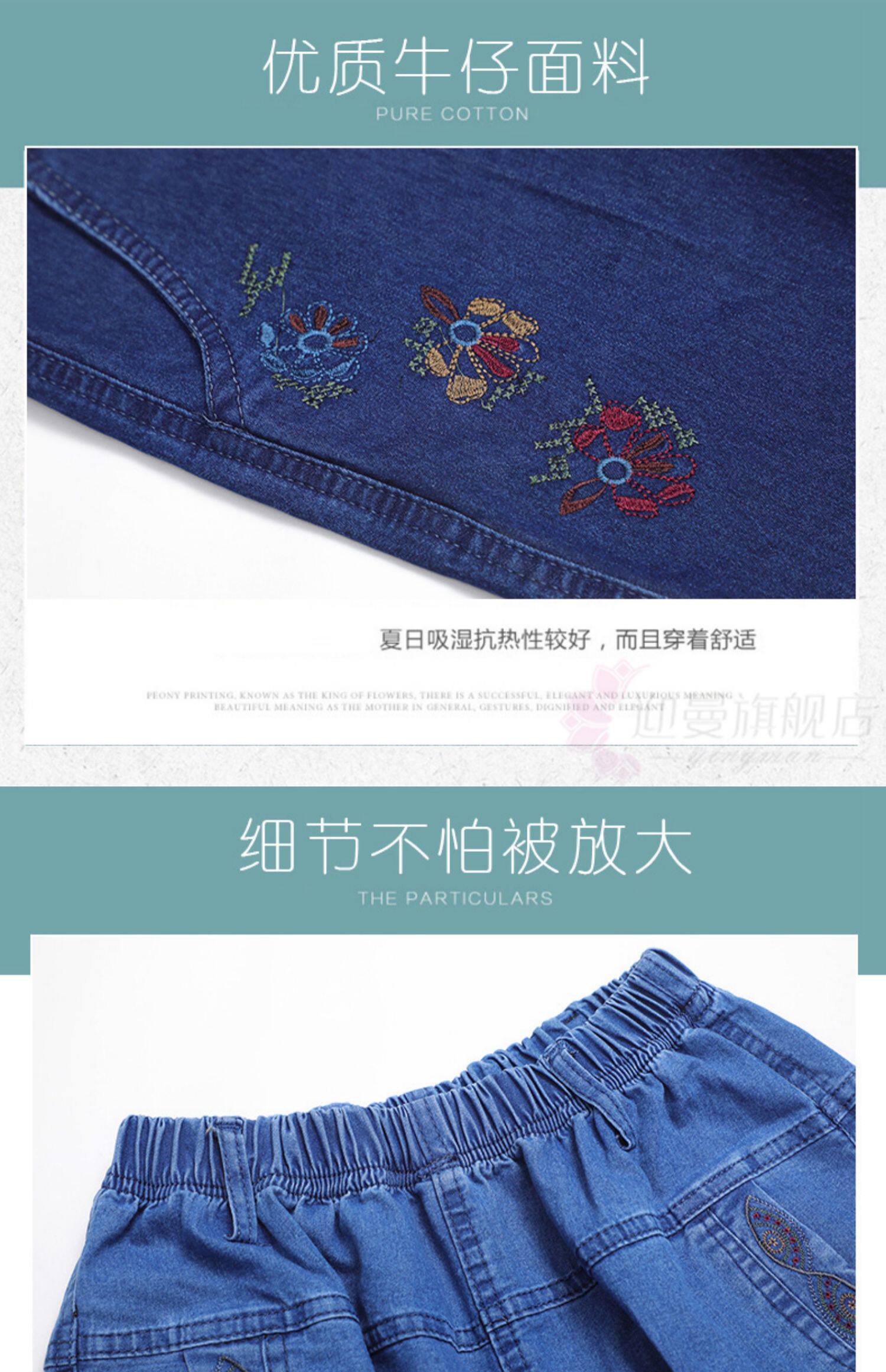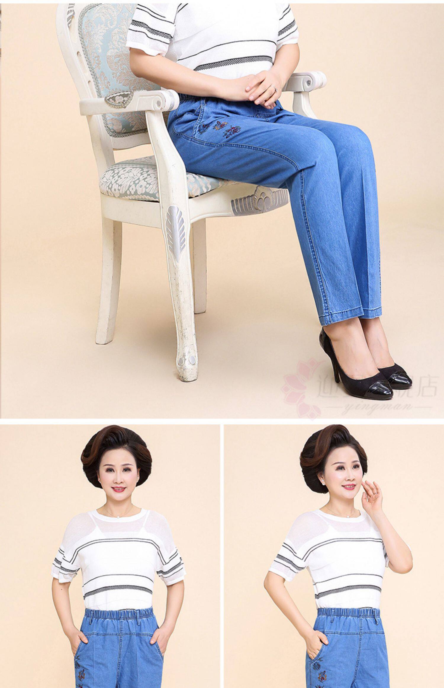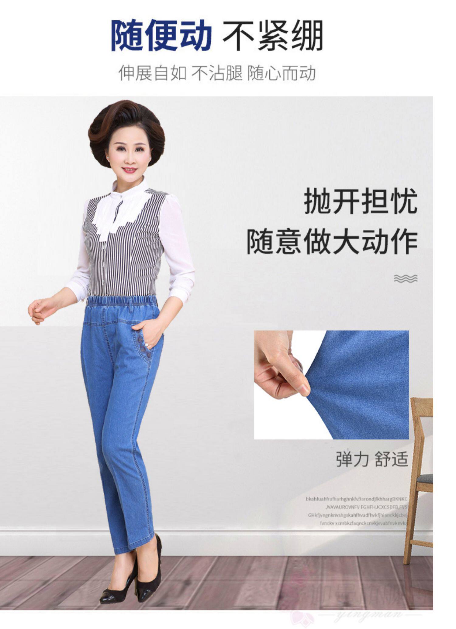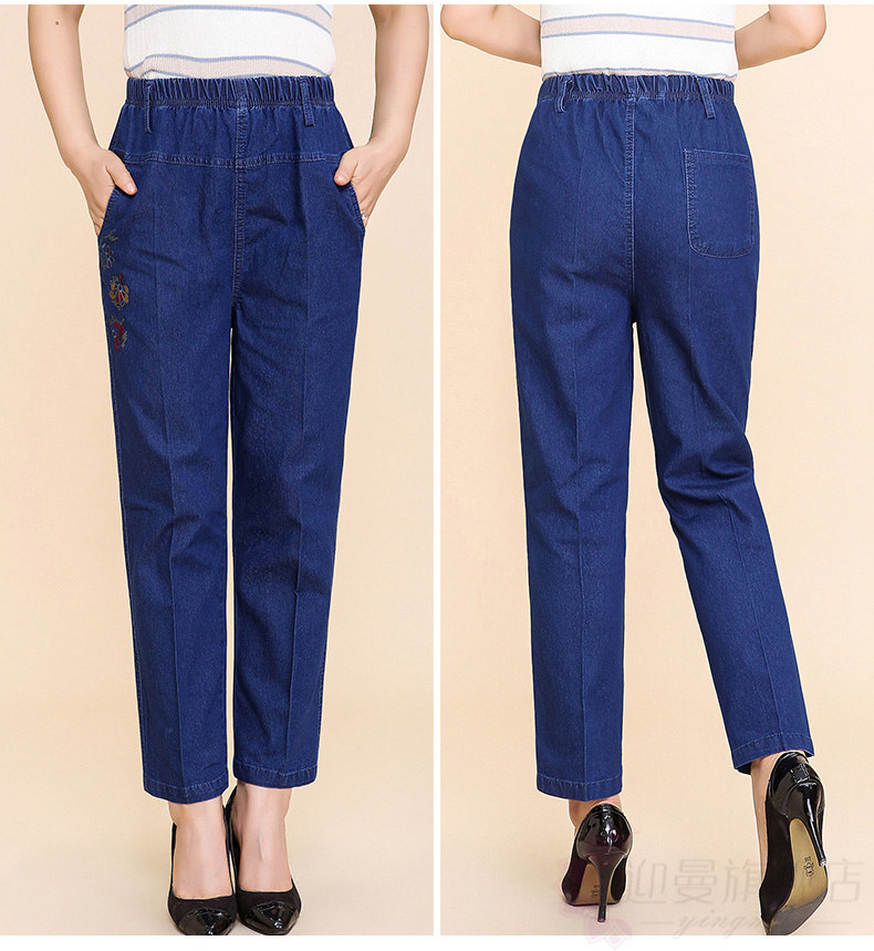 Весенние джинсы, штаны, для среднего возраста, большой размер, высокая талия, свободный прямой крой, эластичная талия