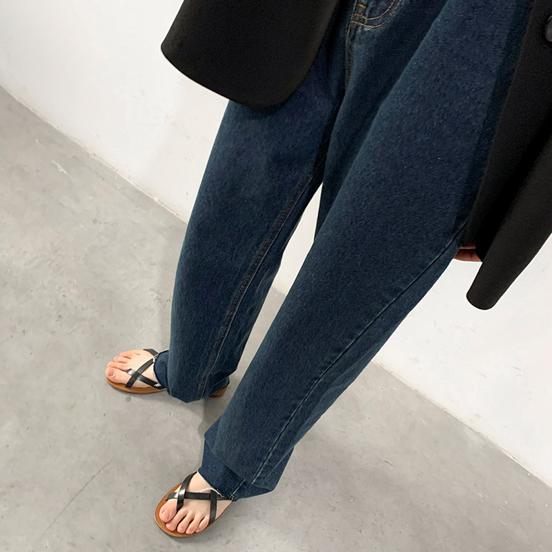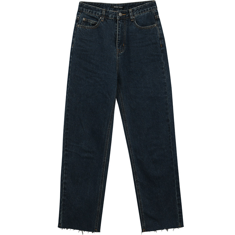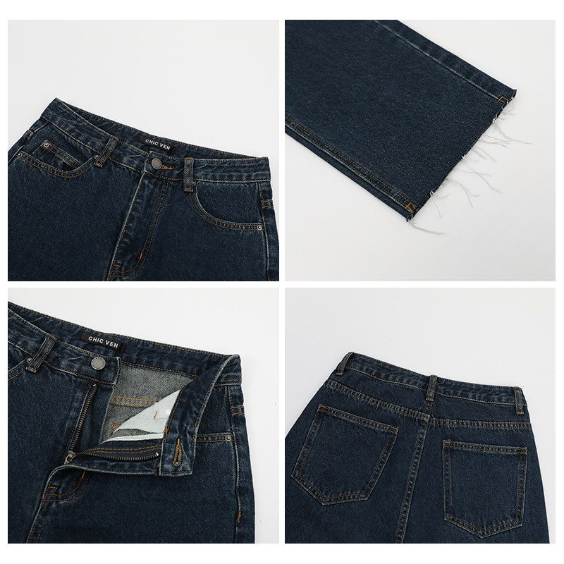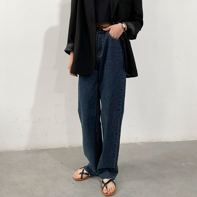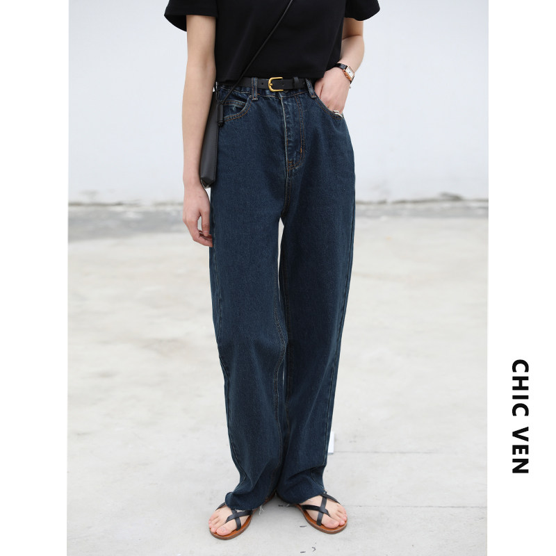 Ретро темные джинсы, штаны, высокая талия, свободный прямой крой