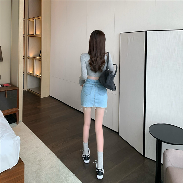 Ретро весенняя приталенная джинсовая юбка, 2023, высокая талия, с акцентом на бедрах
