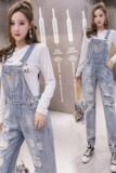 Джинсовый комбинезон, штаны, летняя одежда, 2021 года, в корейском стиле, подходит для подростков, свободный крой