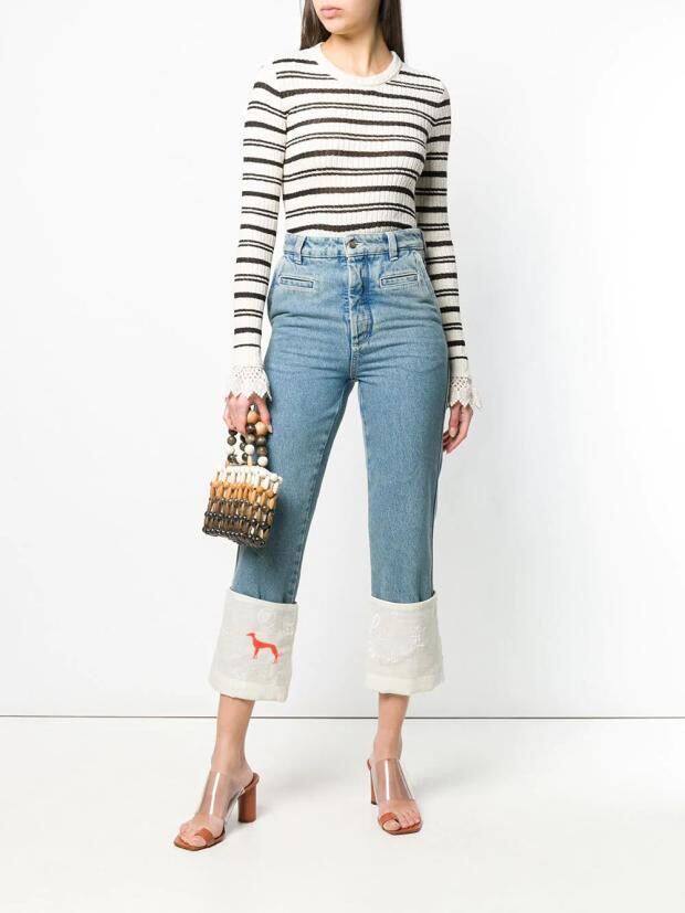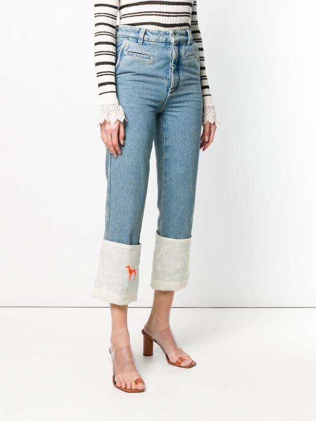 Ретро джинсы, с вышивкой, свободный прямой крой