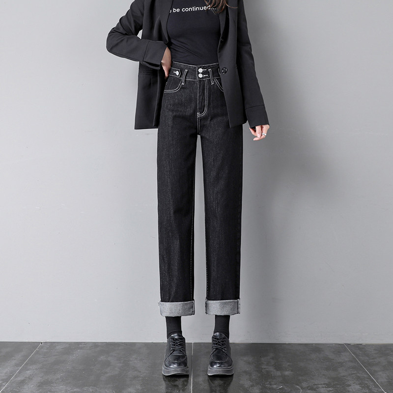 Весенние прямые свободные джинсы, летние приталенные черные штаны, 2021 года, свободный крой, высокая талия, подходит для подростков