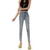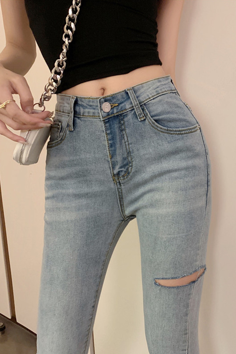 Джинсы, тонкие летние штаны, эластичный ростомер, 2021 года, в обтяжку, высокая талия, популярно в интернете, по фигуре