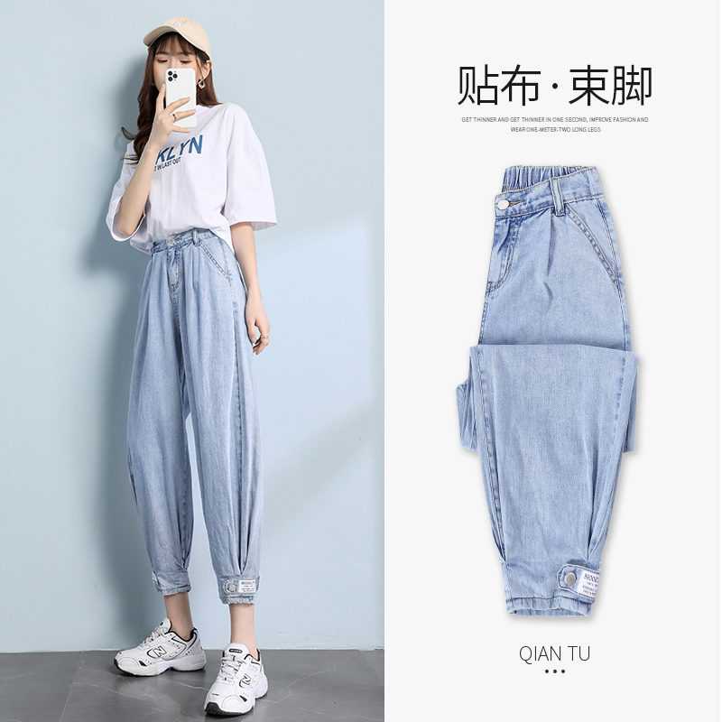 Джинсы, весенние осенние приталенные штаны, 2021 года, высокая талия, свободный крой