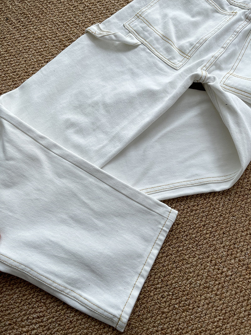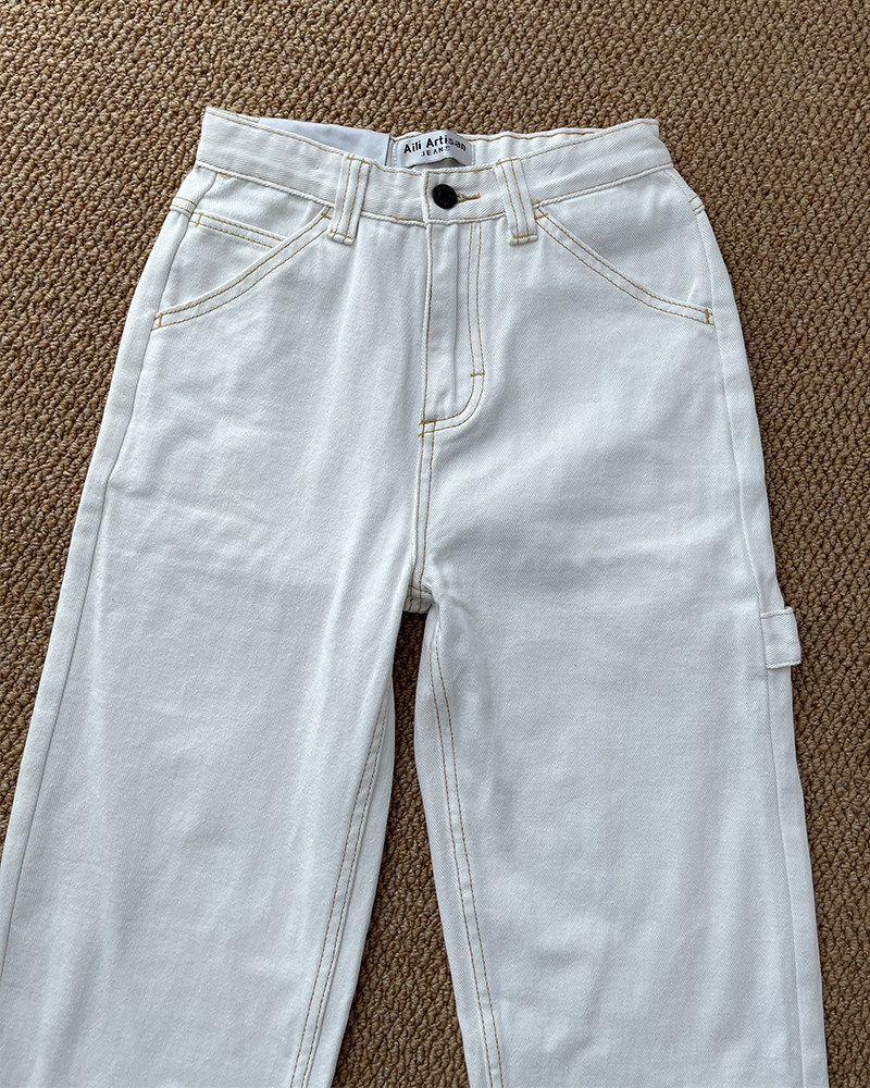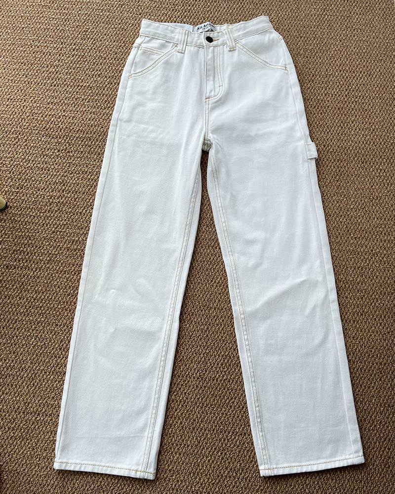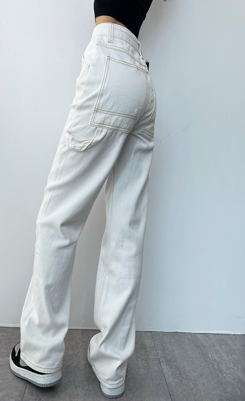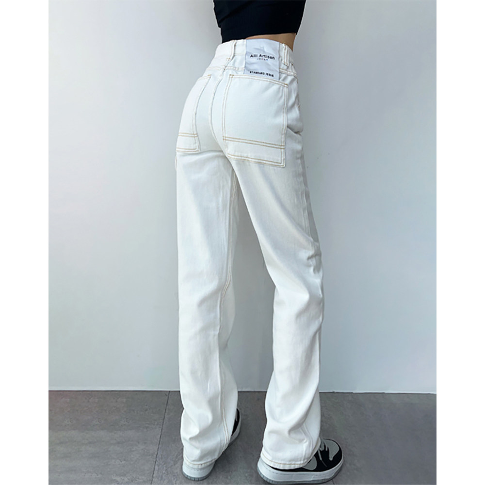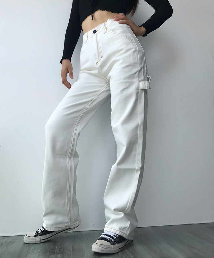 Белые прямые свободные джинсы, штаны, поясная сумка, высокая талия, по фигуре, подходит для подростков