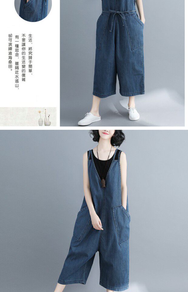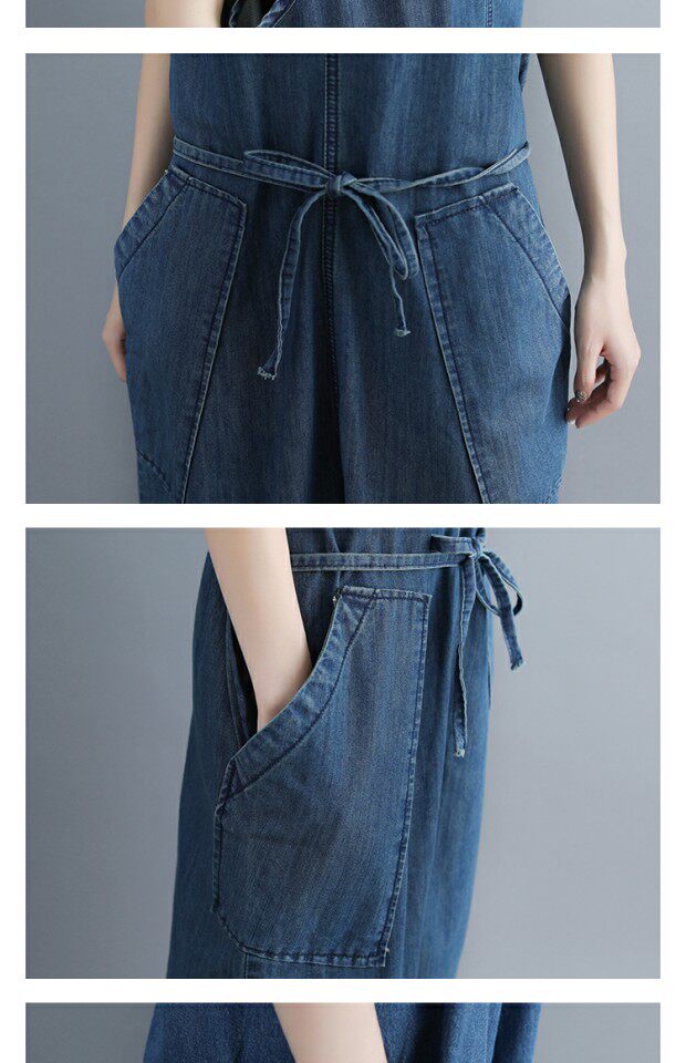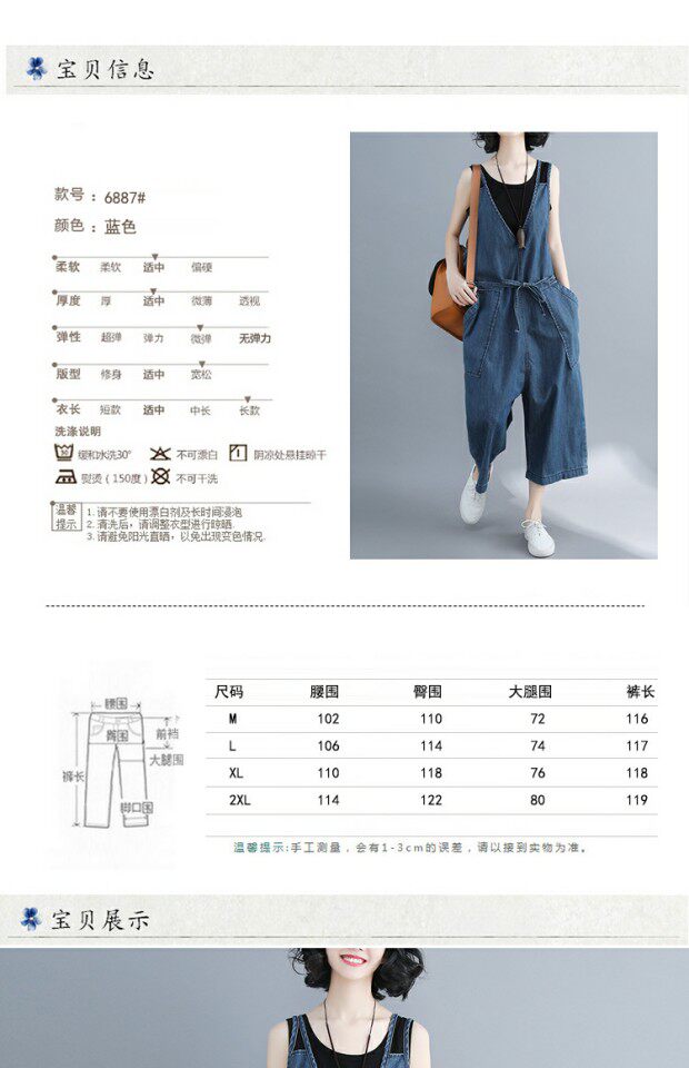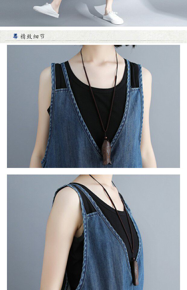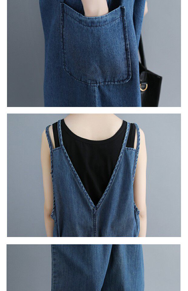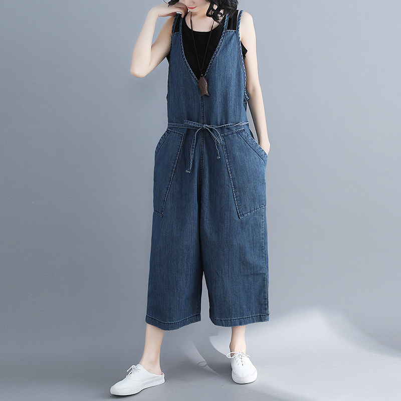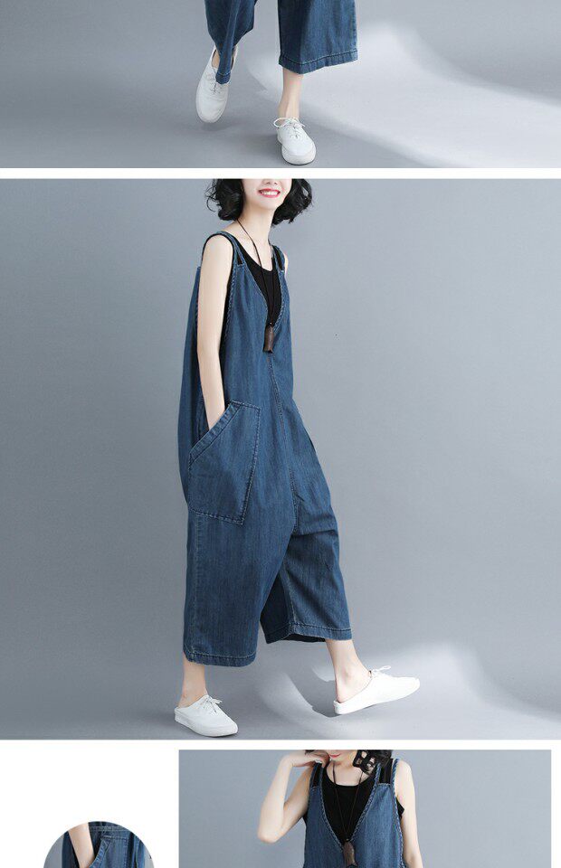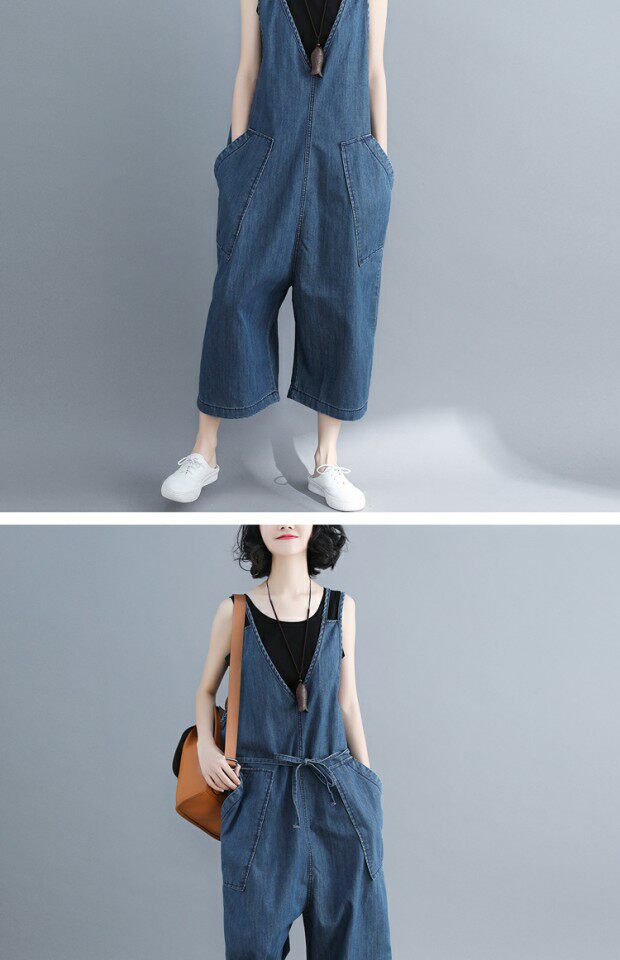 Летний комбинезон, джинсовые штаны, подтяжки, V-образный вырез, большой размер, эффект подтяжки