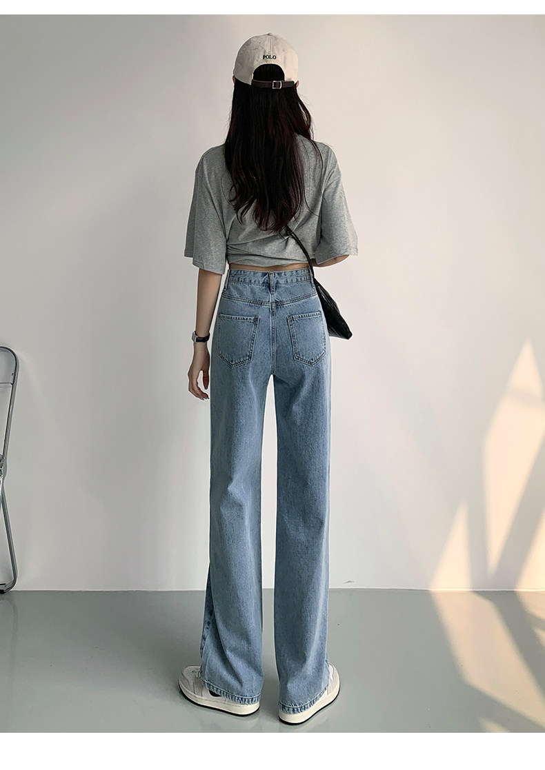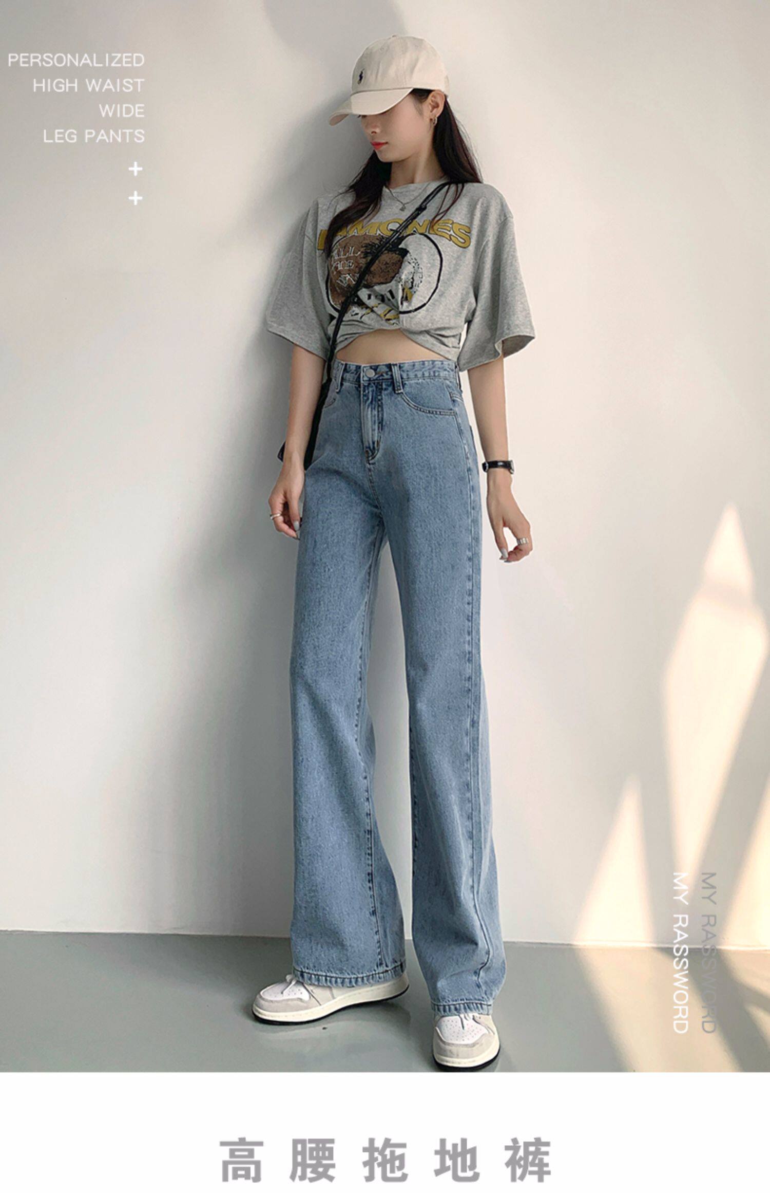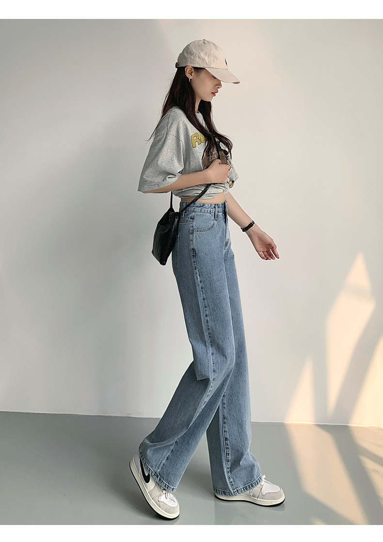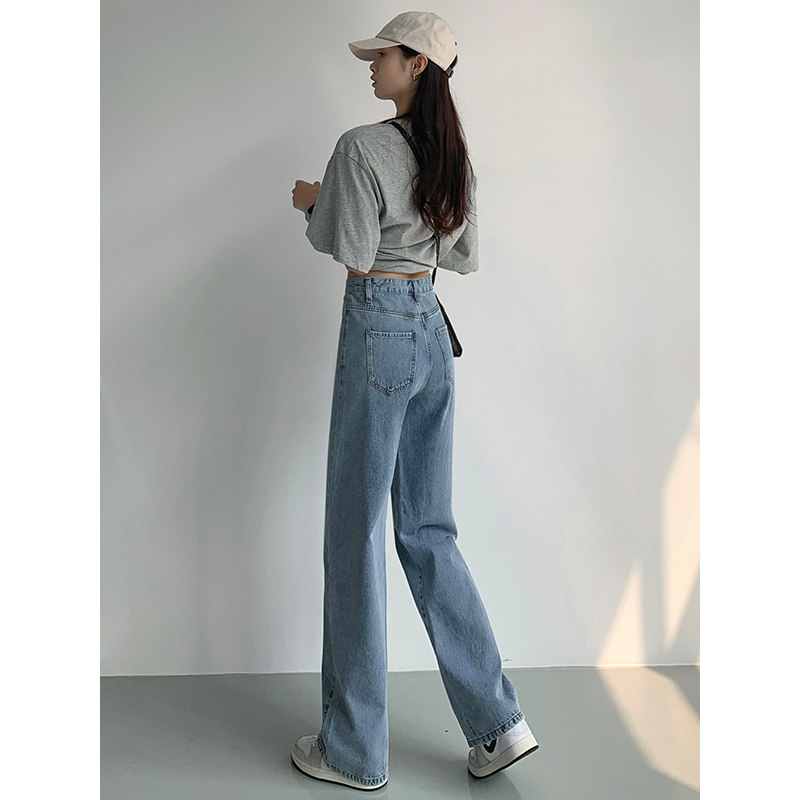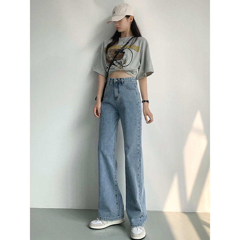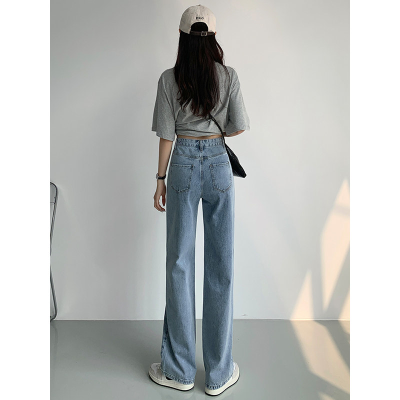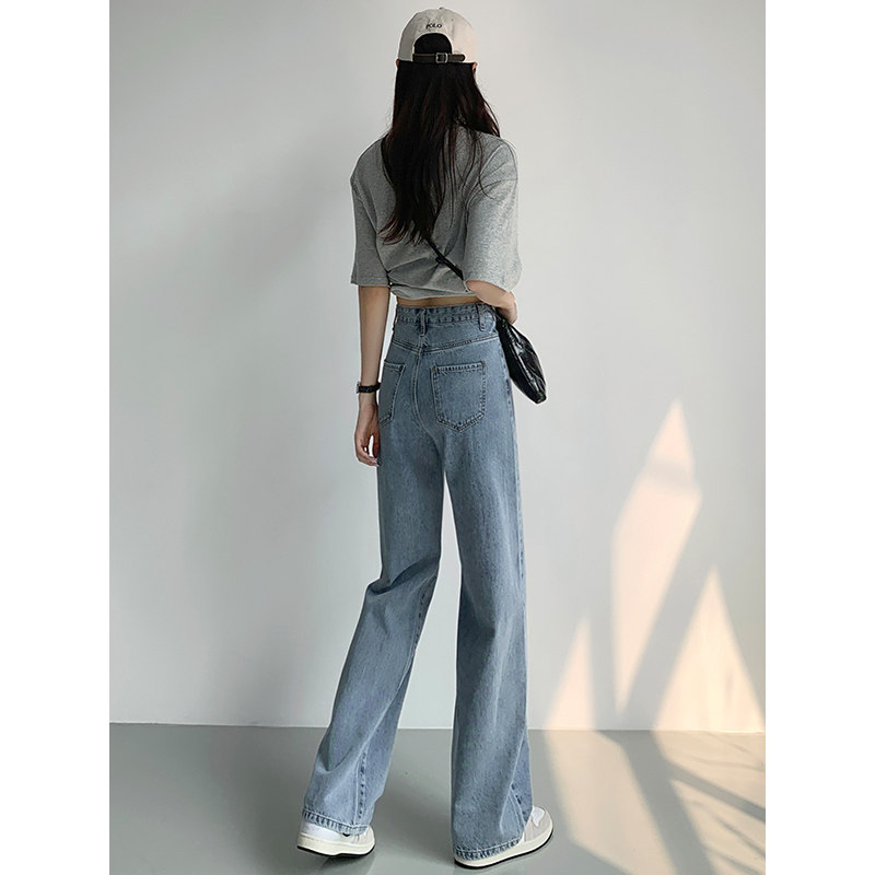 Светлые джинсы, осенние длинные штаны, свободный прямой крой, коллекция 2023, высокая талия, по фигуре