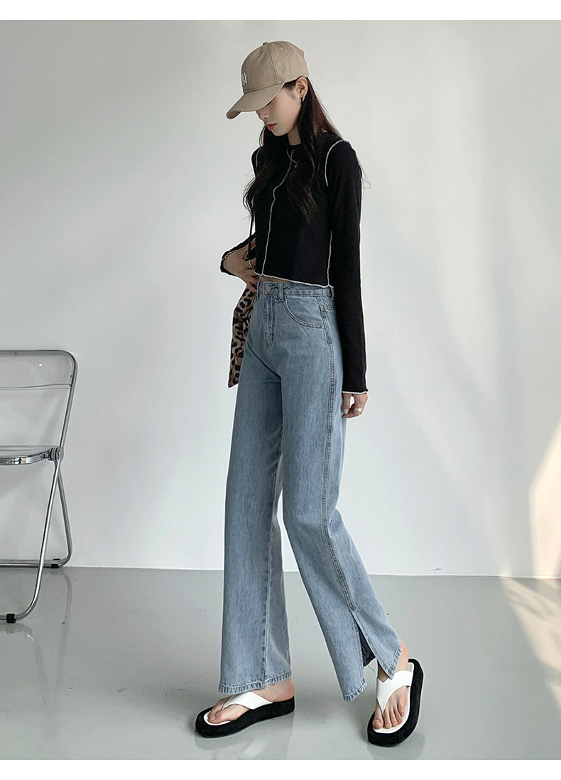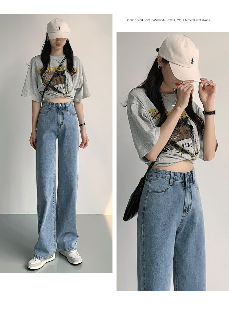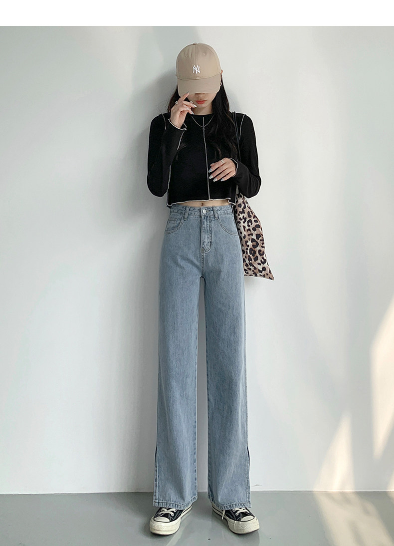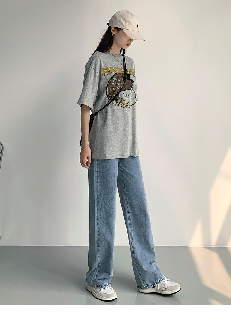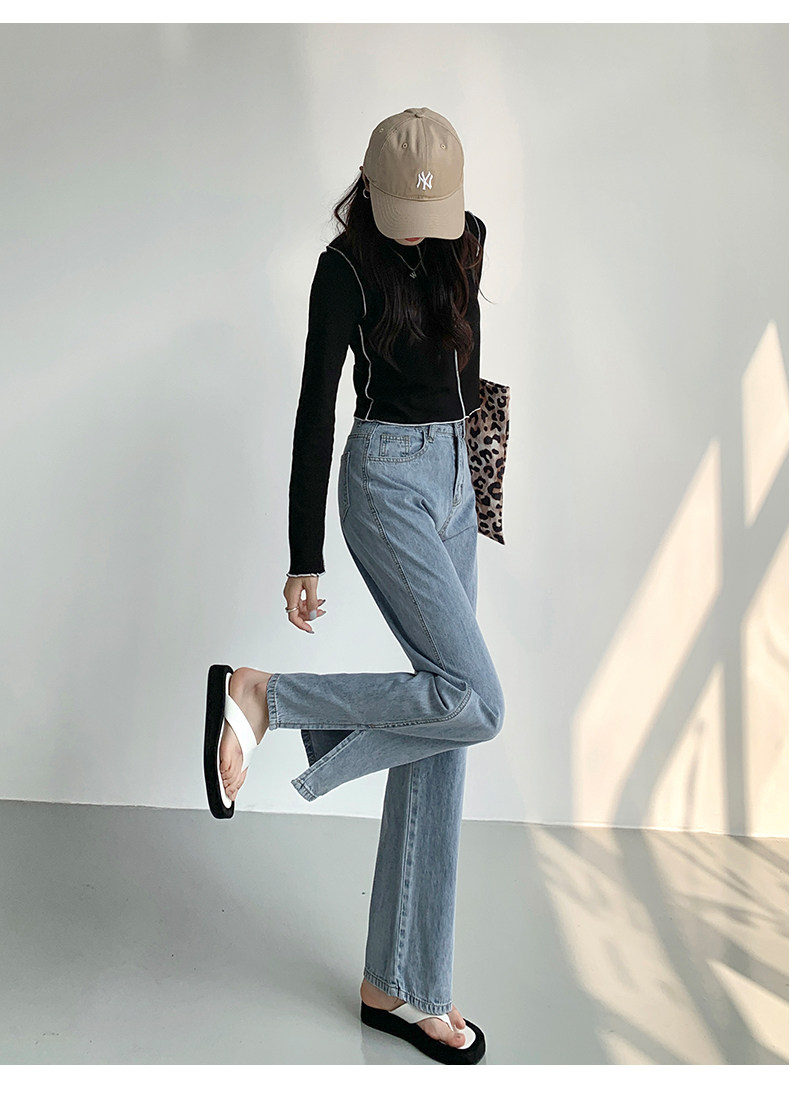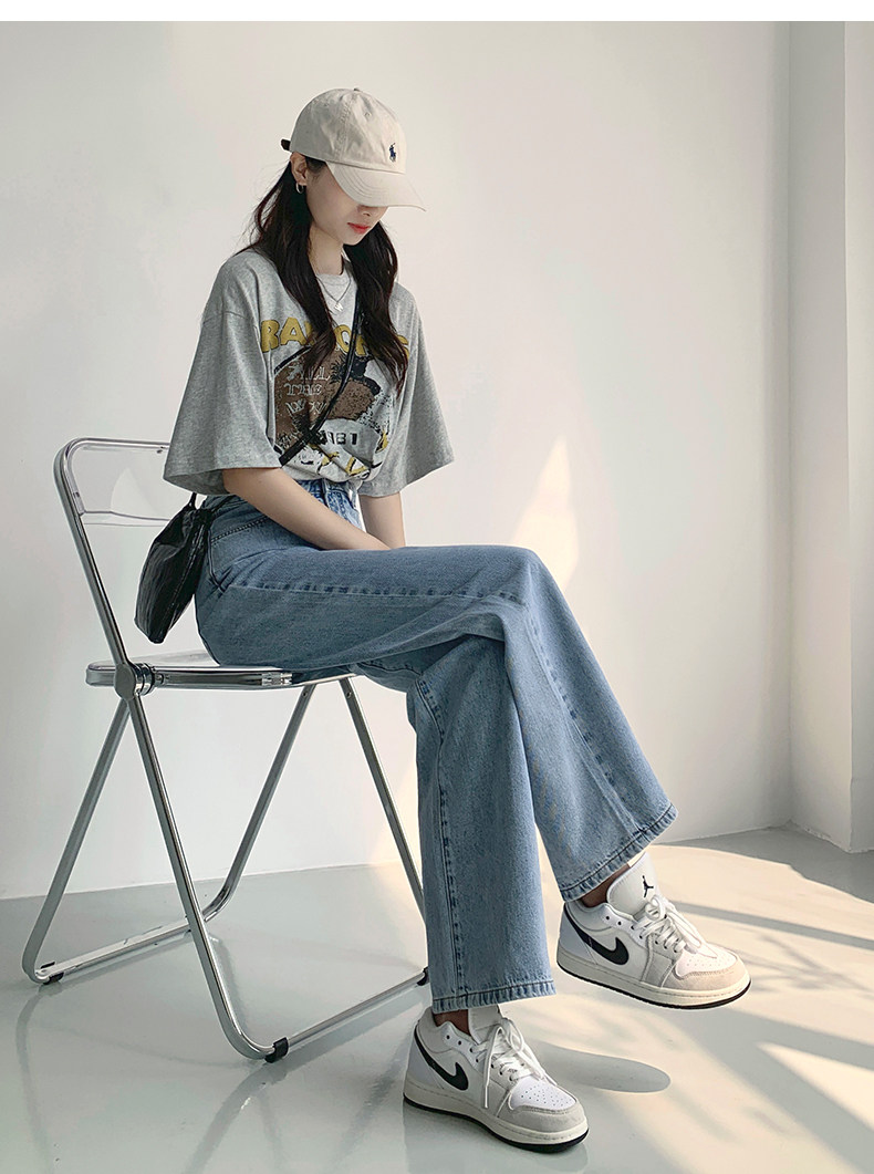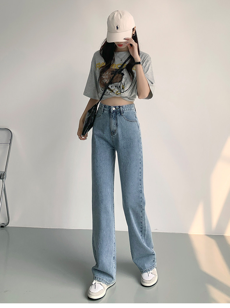 Светлые джинсы, осенние длинные штаны, свободный прямой крой, коллекция 2023, высокая талия, по фигуре