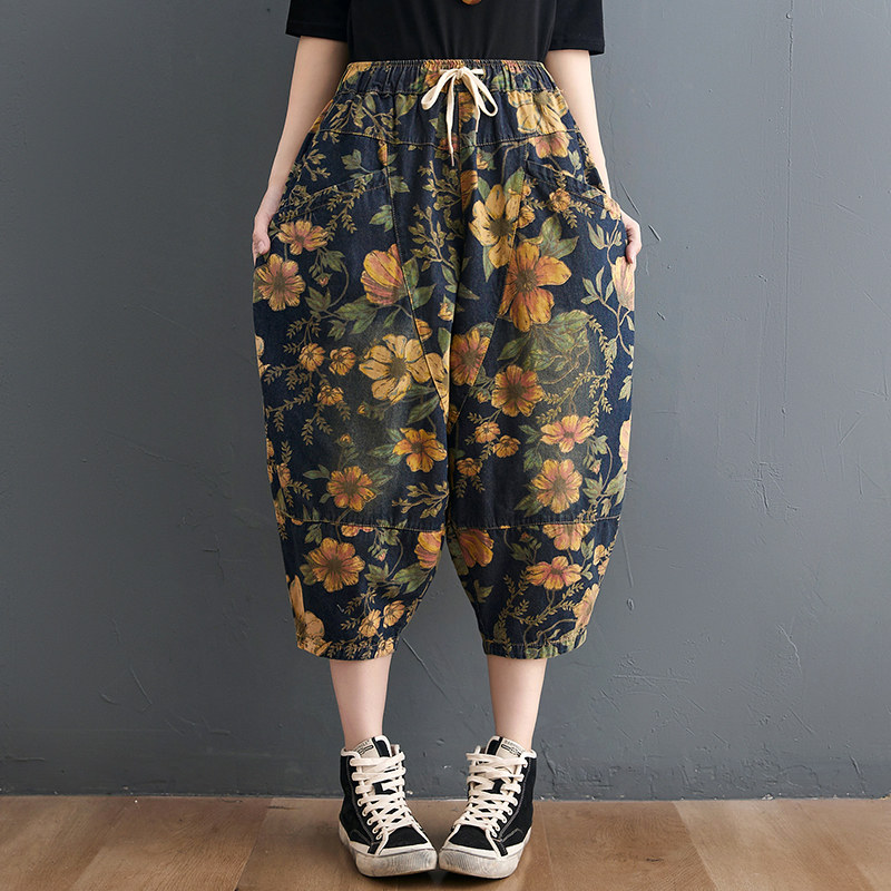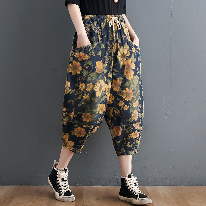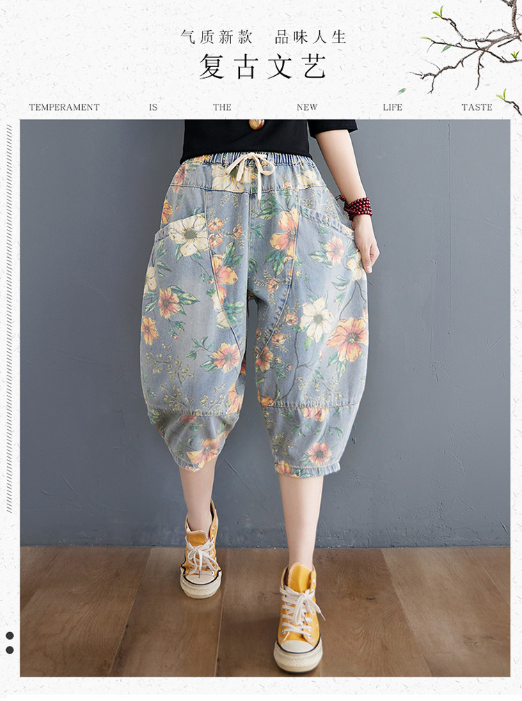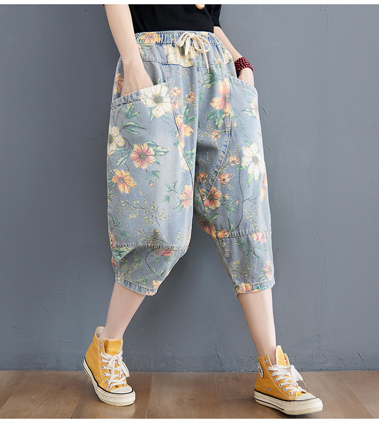 Летние штаны, джинсы, подходит для полных девушек, оверсайз, эластичная талия