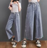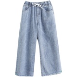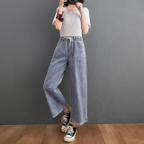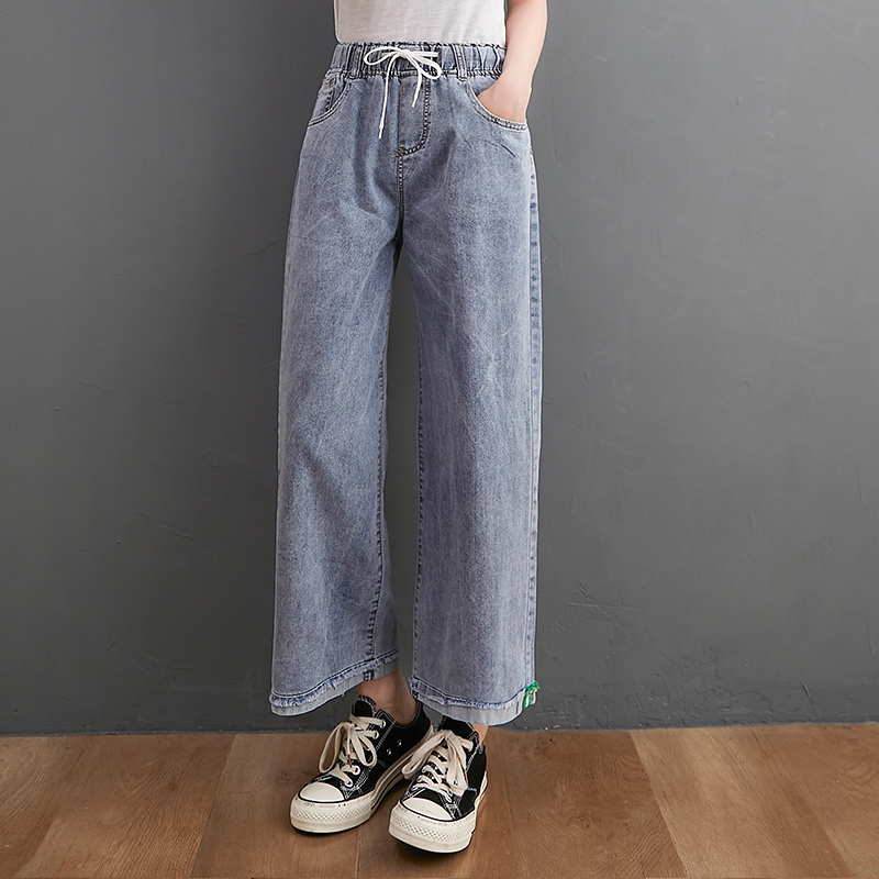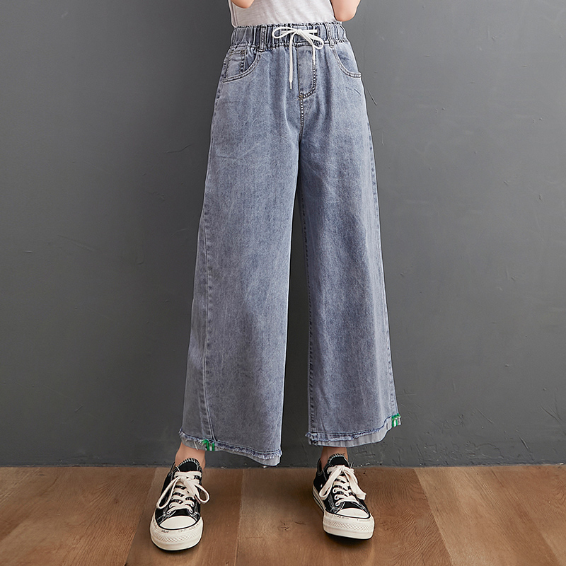 Джинсы, летние штаны, большой размер, высокая талия, в корейском стиле, подходит для подростков, по фигуре, свободный прямой крой