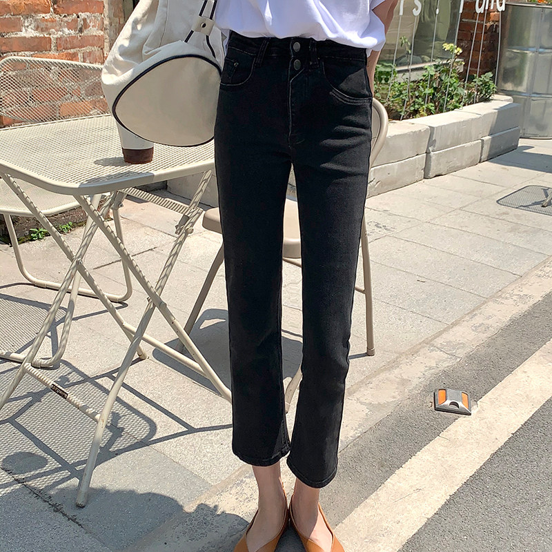 Весенние черные дизайнерские джинсы, универсальные штаны, эластичный летний карандаш, тренд сезона, по фигуре, высокая талия, свободный прямой крой