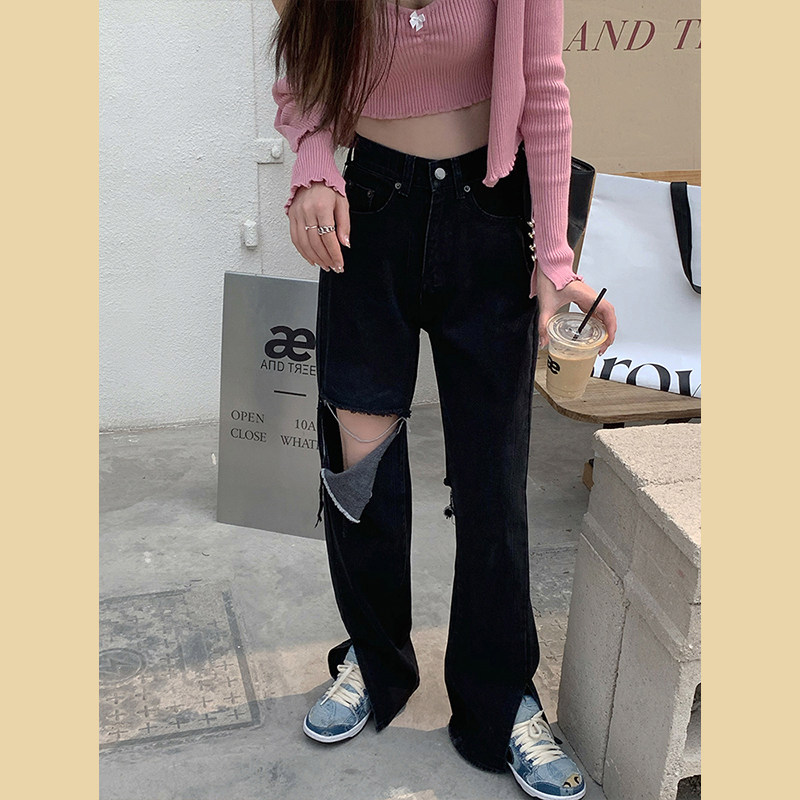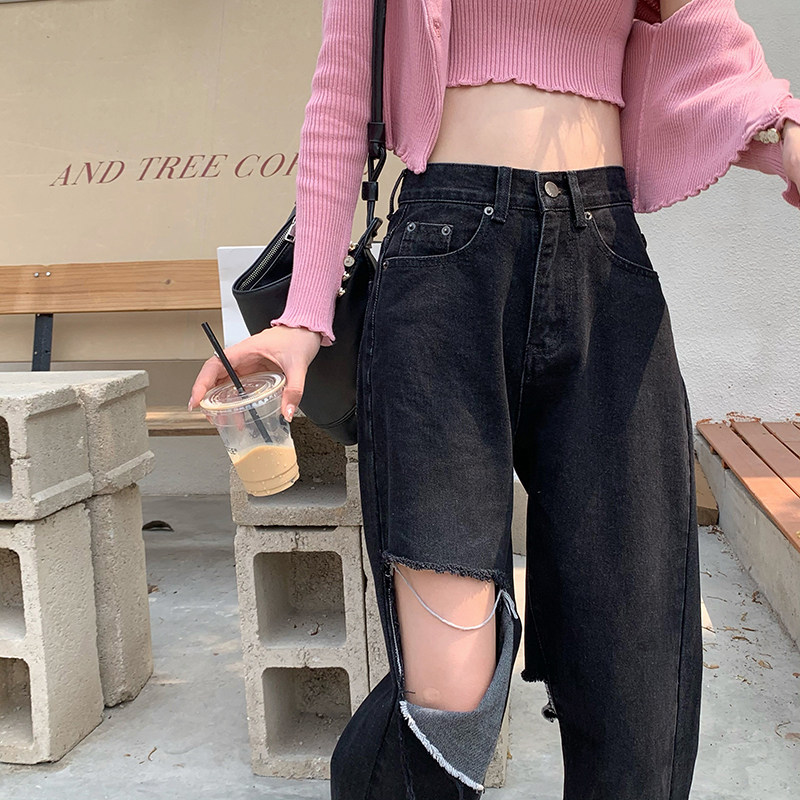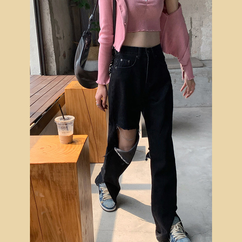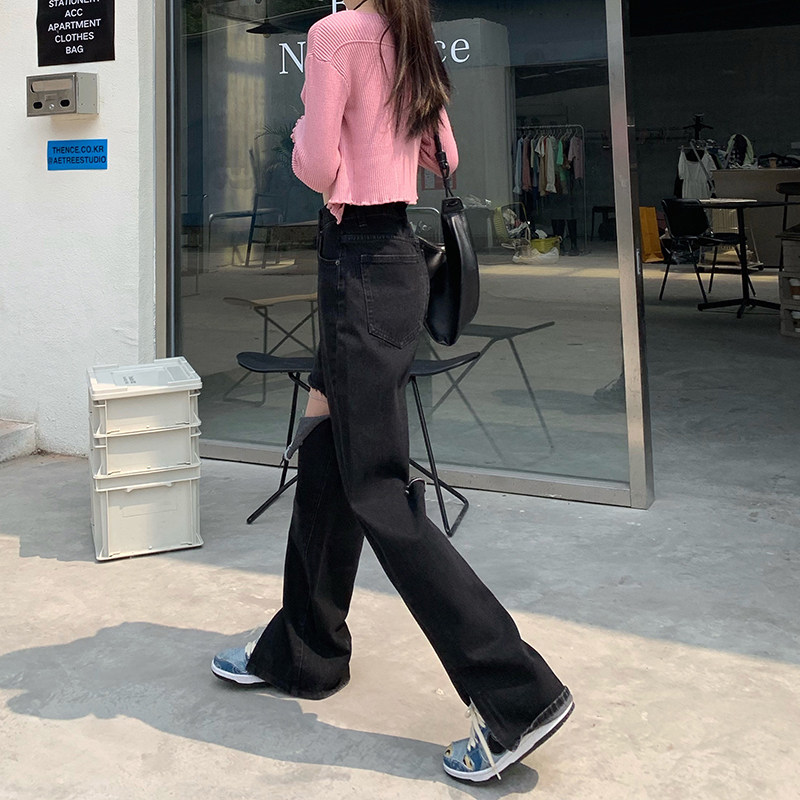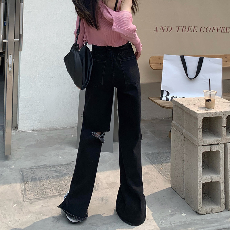 Tide, черные джинсы, летние штаны, высокая талия, сезон 2021, свободный прямой крой