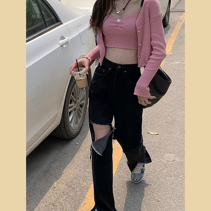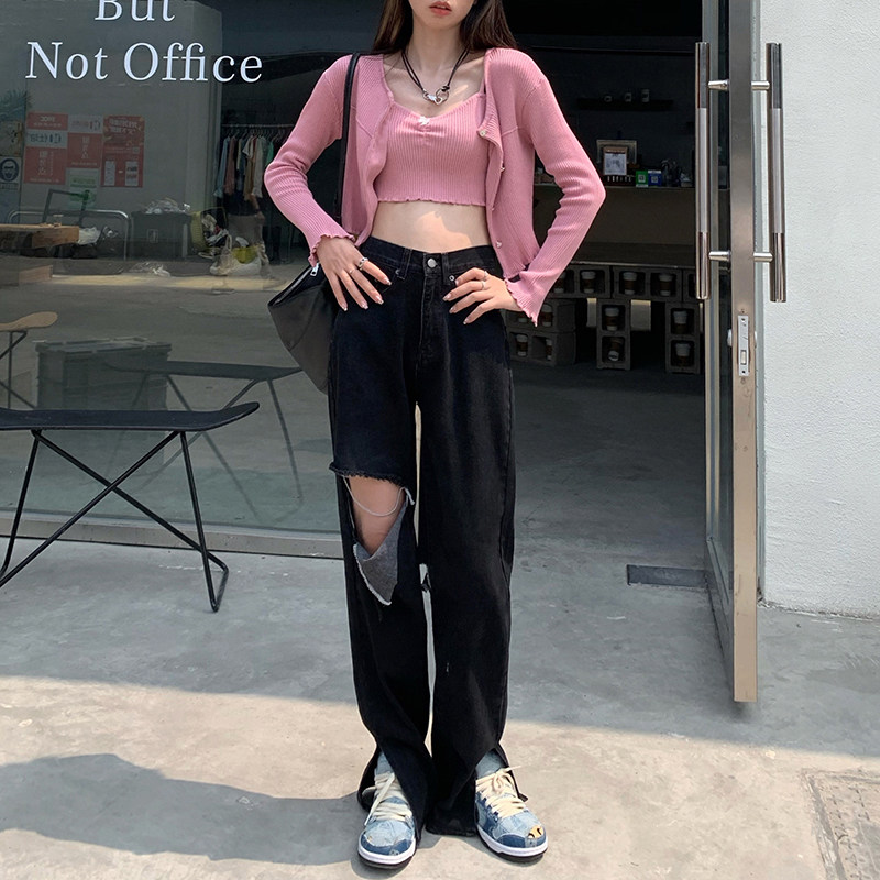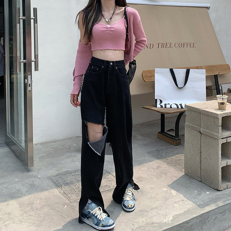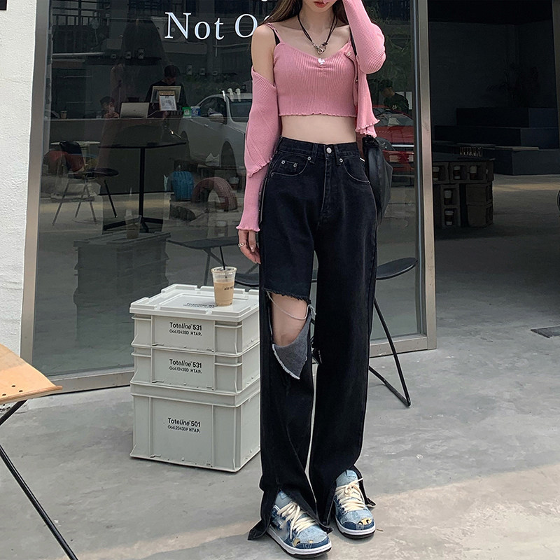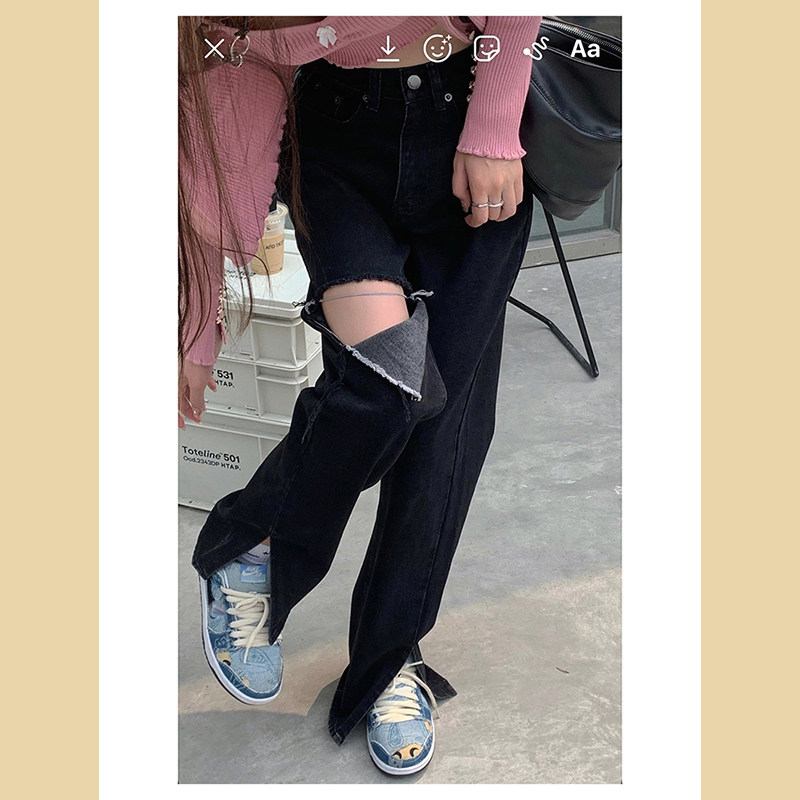 Tide, черные джинсы, летние штаны, высокая талия, сезон 2021, свободный прямой крой