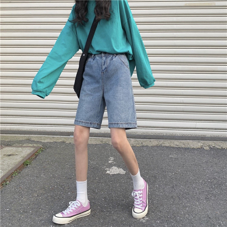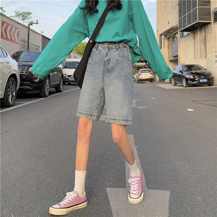 Джинсовые осенние штаны, брендовые шорты, подходят для подростков, высокая талия, свободный прямой крой