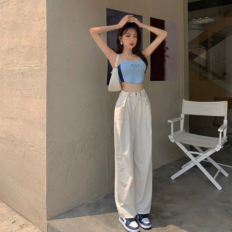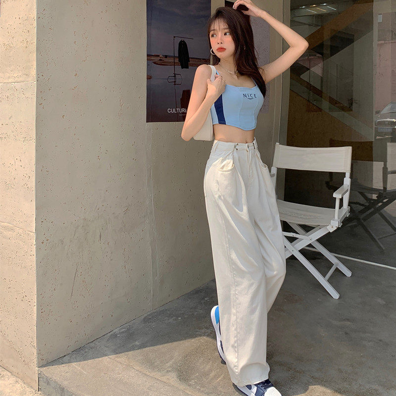 Джинсы, летние белые штаны, подходит для полных девушек, оверсайз, коллекция 2023, высокая талия, свободный прямой крой