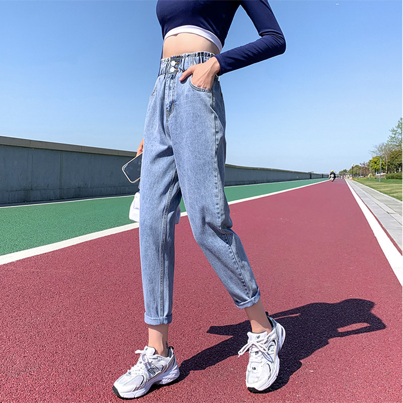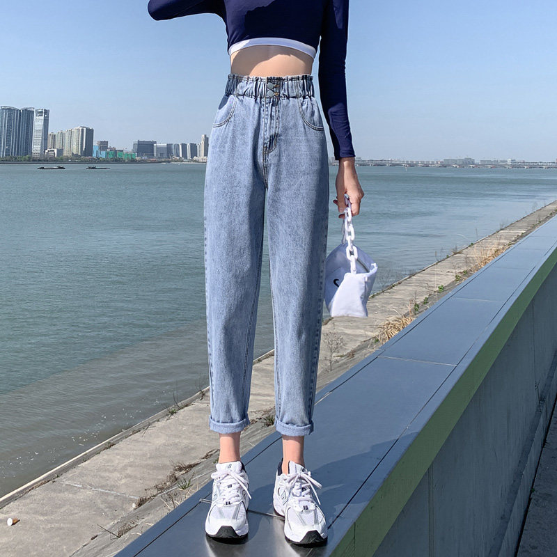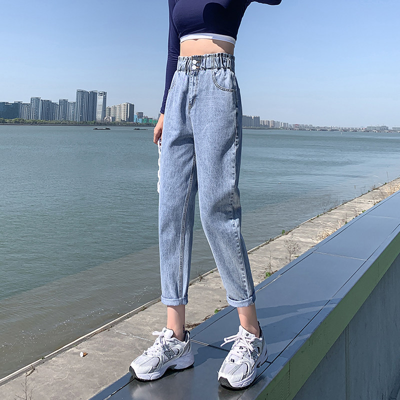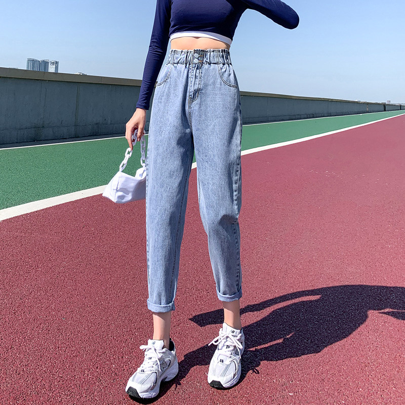 Светлые штаны, осенние демисезонные модные джинсы, высокая талия, свободный крой