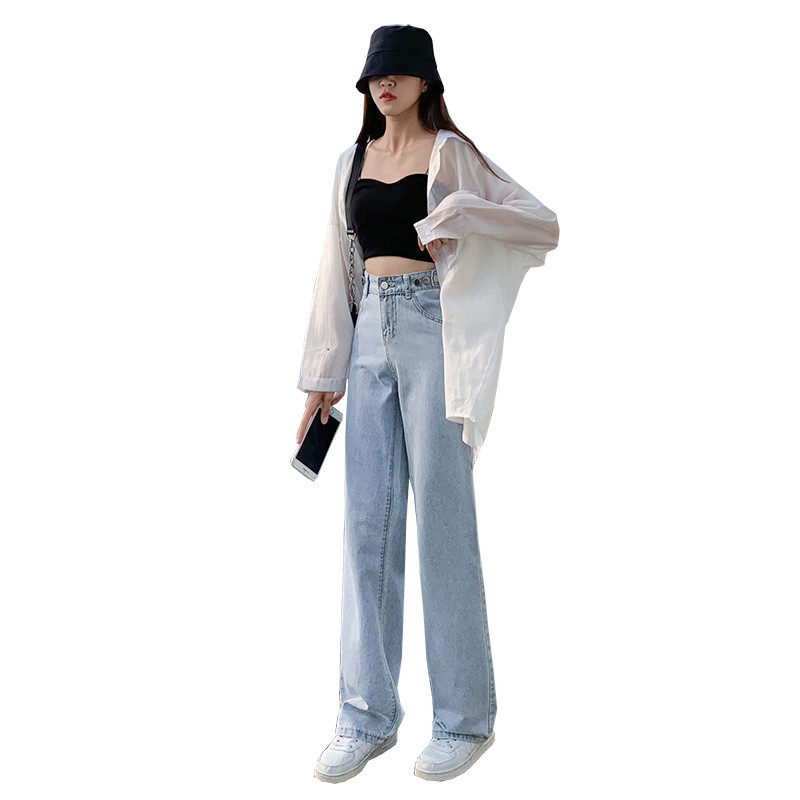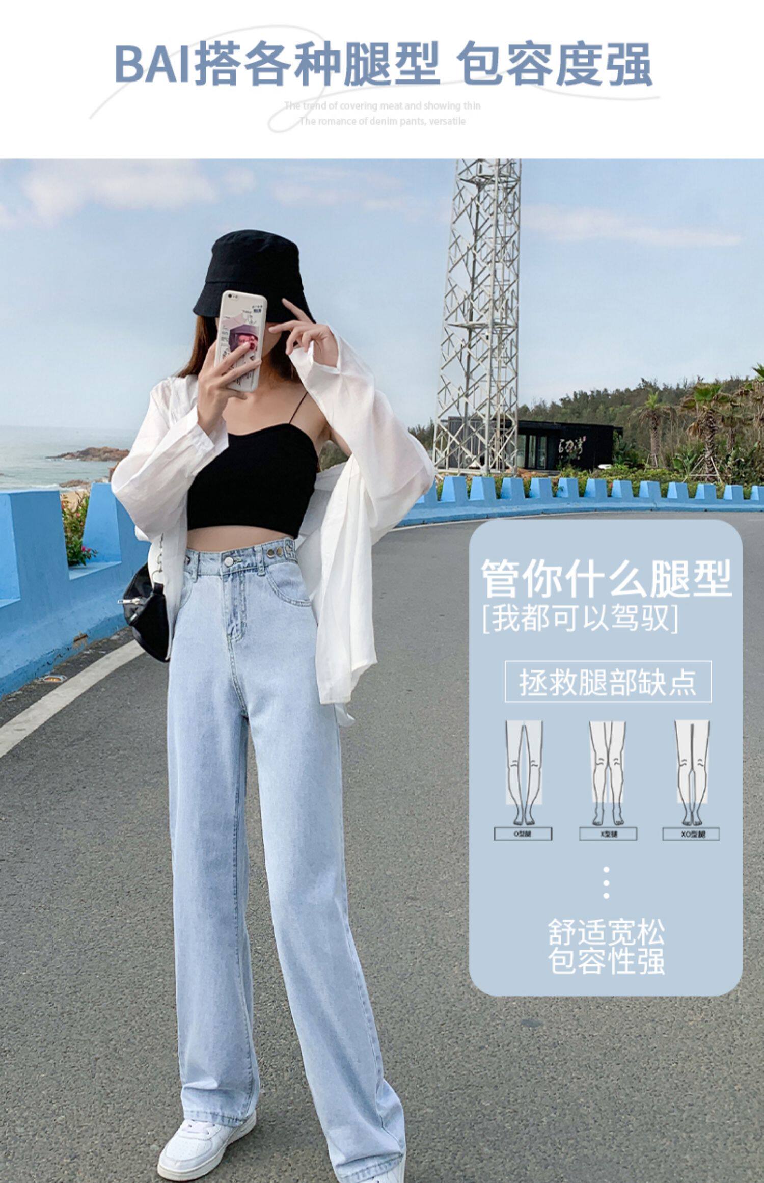 Весенние джинсы, летние тонкие светлые цветные штаны, подходят для подростков, коллекция 2022, высокая талия, свободный прямой крой