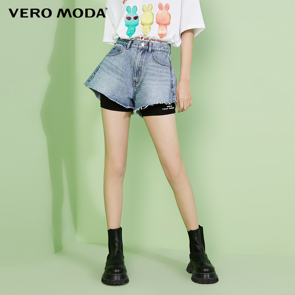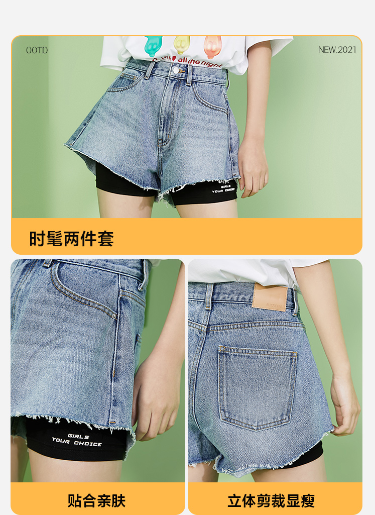 Vero moda, демисезонное эластичное защитное белье, комплект, джинсовая юбка, шорты, коллекция 2021, высокая талия