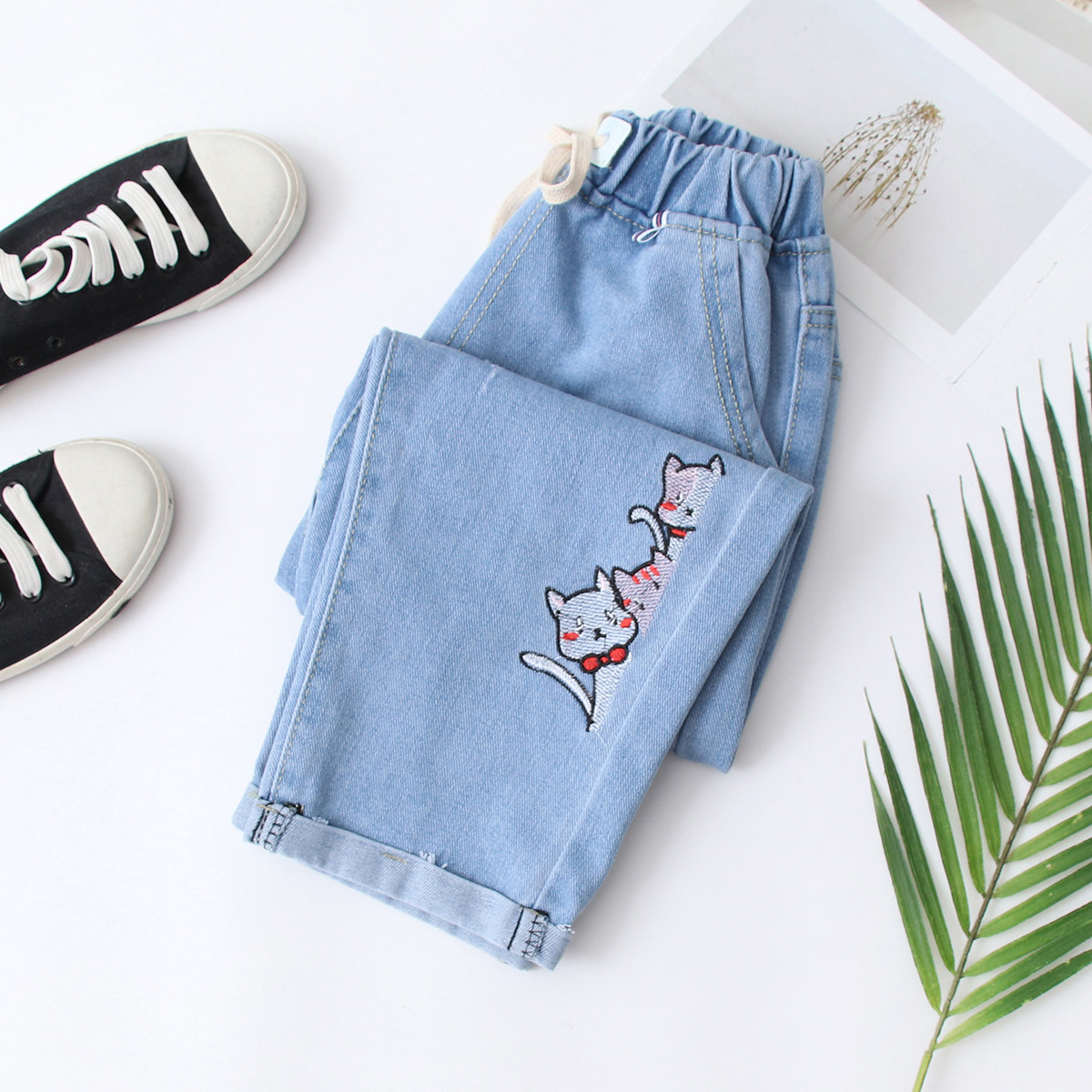 Джинсовые шорты, штаны для отдыха для школьников и студентов, для средней школы, оверсайз, свободный прямой крой