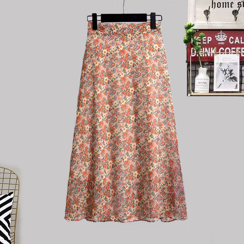 Летняя шифоновая приталенная длинная юбка, высокая талия, А-силуэт
