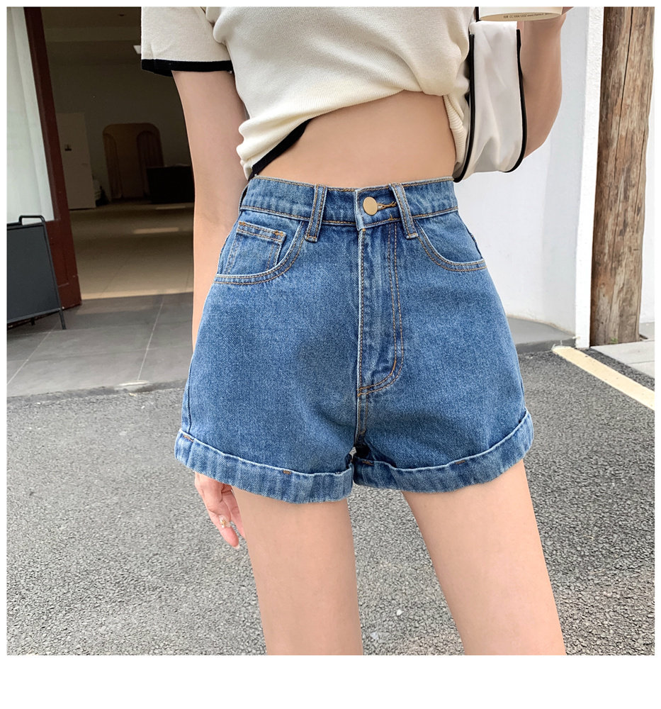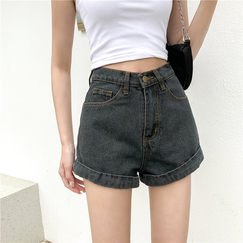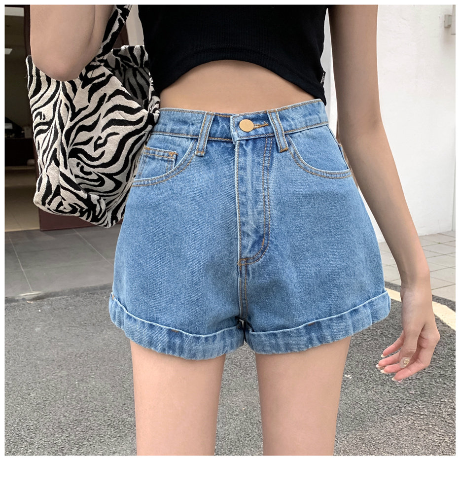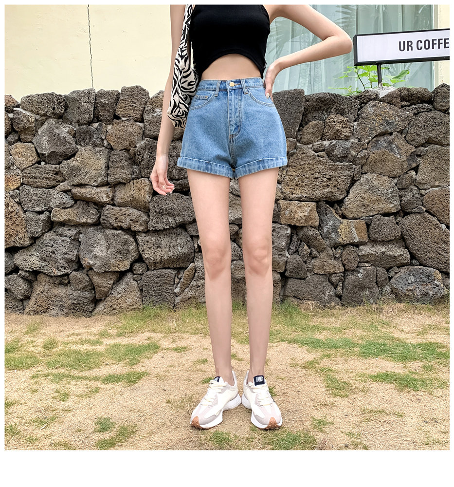 Джинсовая юбка, шорты, штаны, высокая талия, свободный крой, популярно в интернете, А-силуэт, в корейском стиле