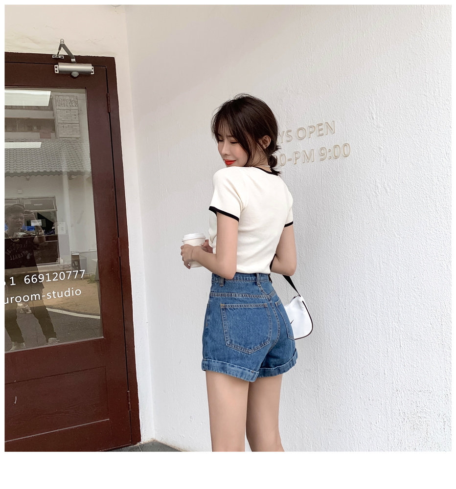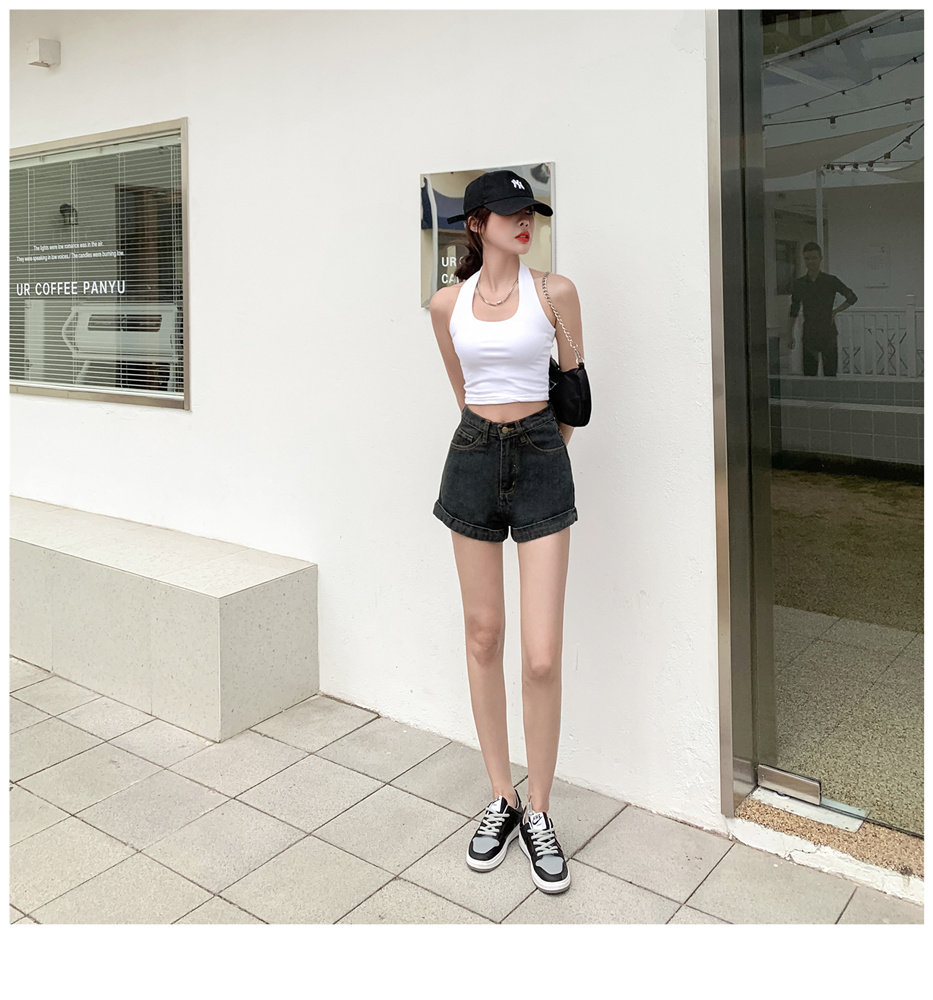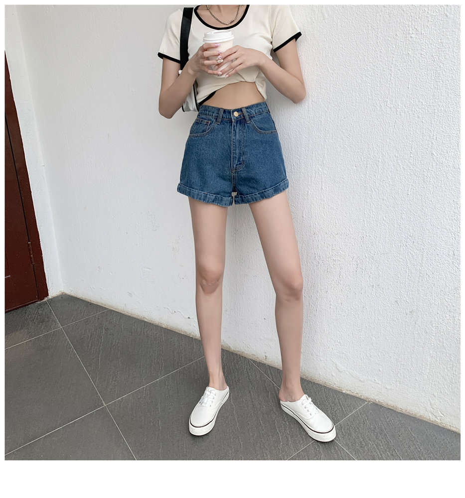 Джинсовая юбка, шорты, штаны, высокая талия, свободный крой, популярно в интернете, А-силуэт, в корейском стиле