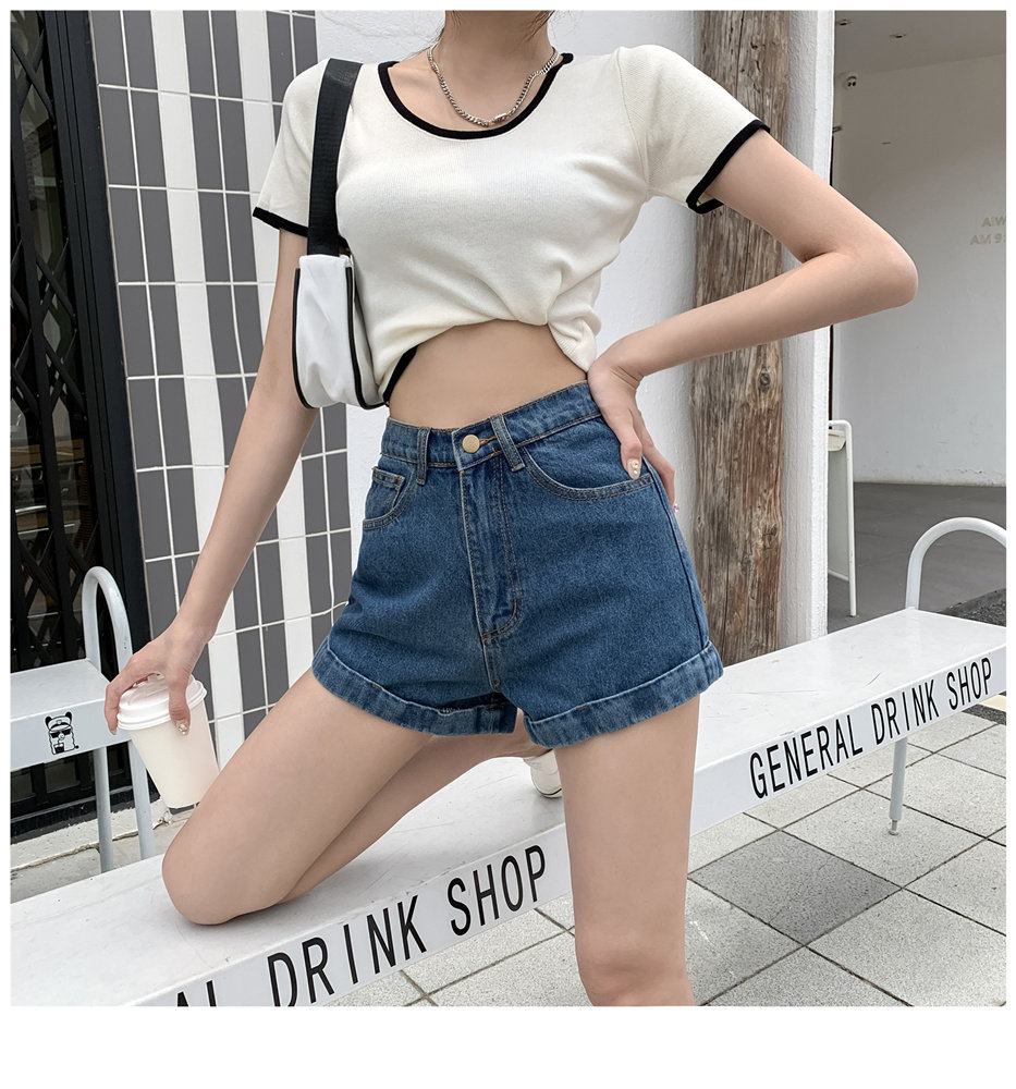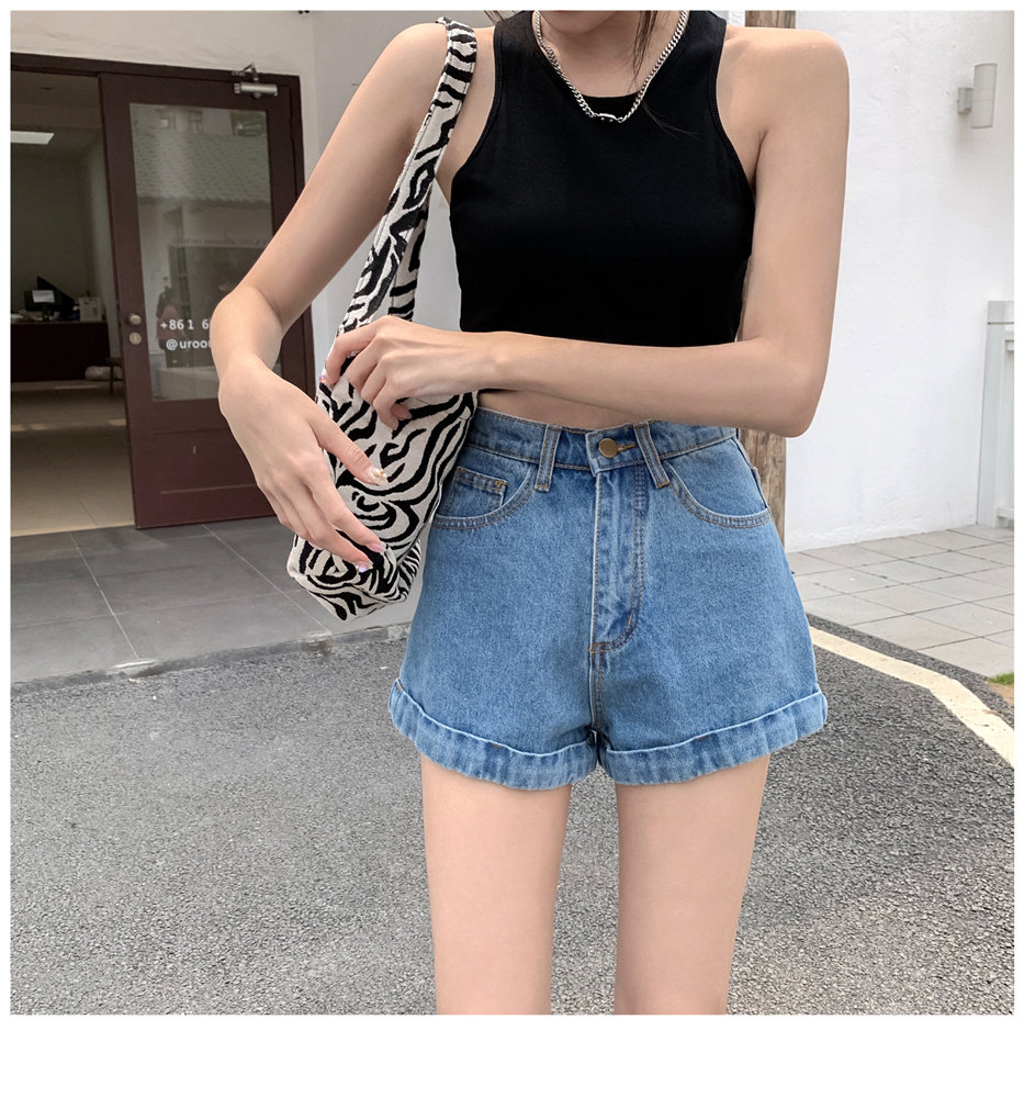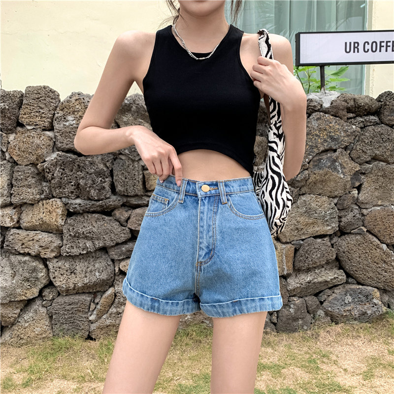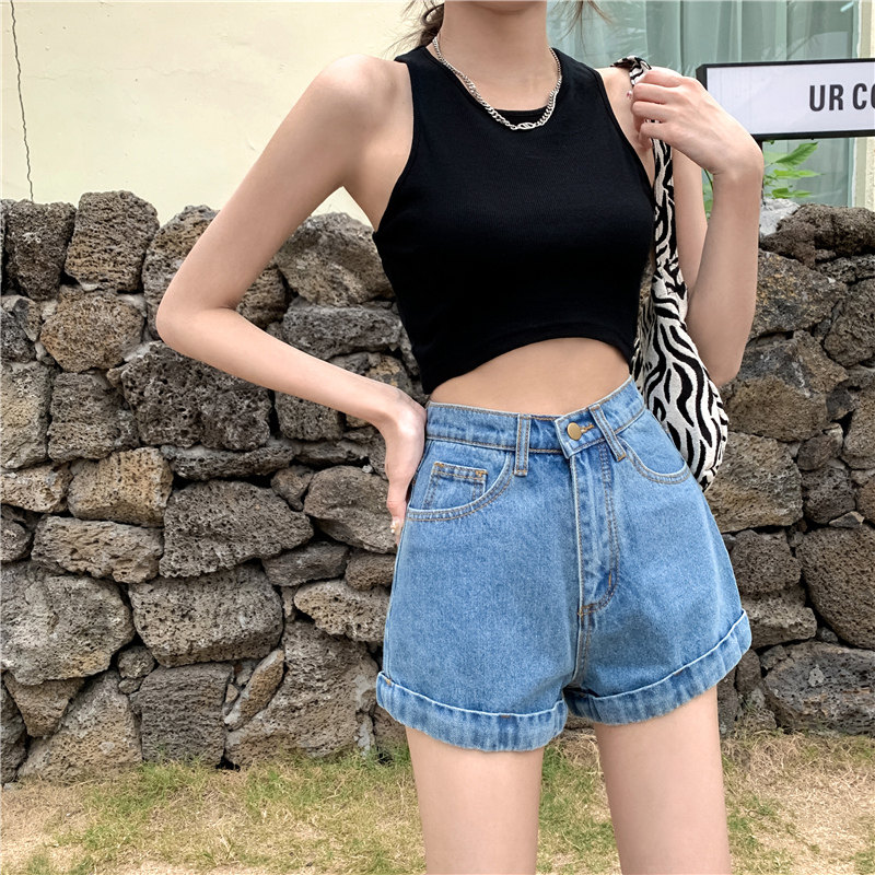 Светлая джинсовая юбка, шорты, штаны, высокая талия, свободный крой, популярно в интернете, А-силуэт, в корейском стиле