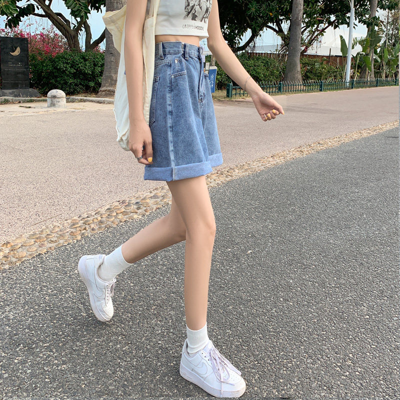 Tide, джинсовая юбка, шорты, летние вместительные и большые штаны, высокая талия, большой размер, свободный прямой крой