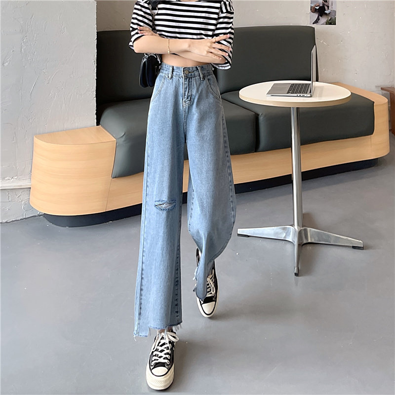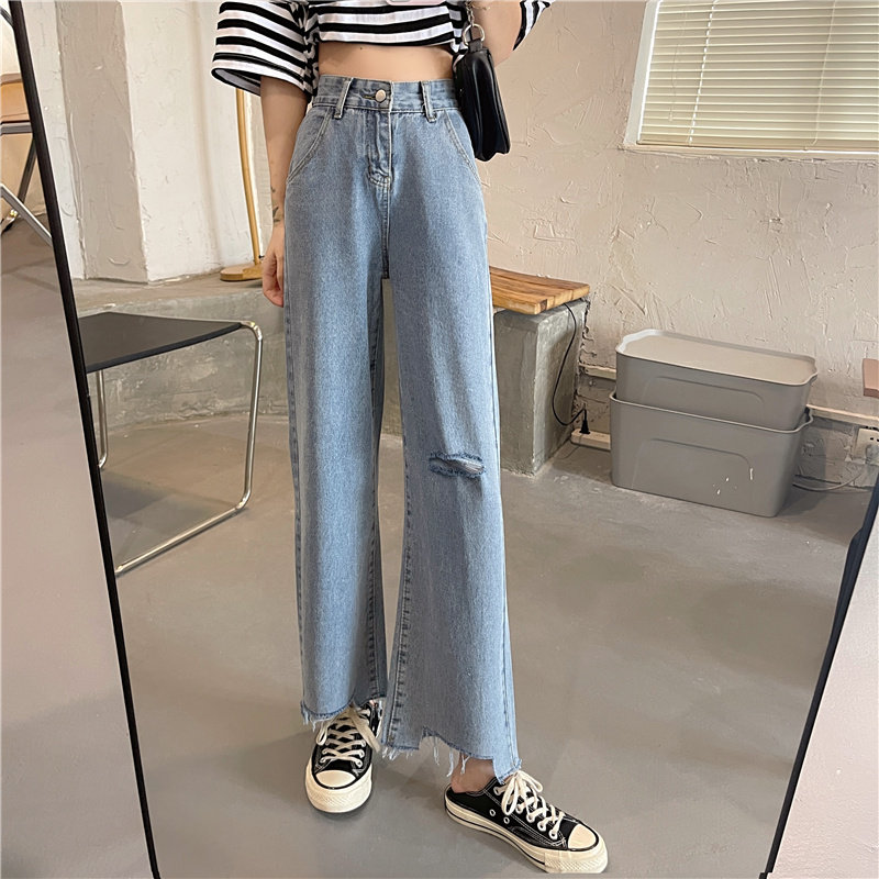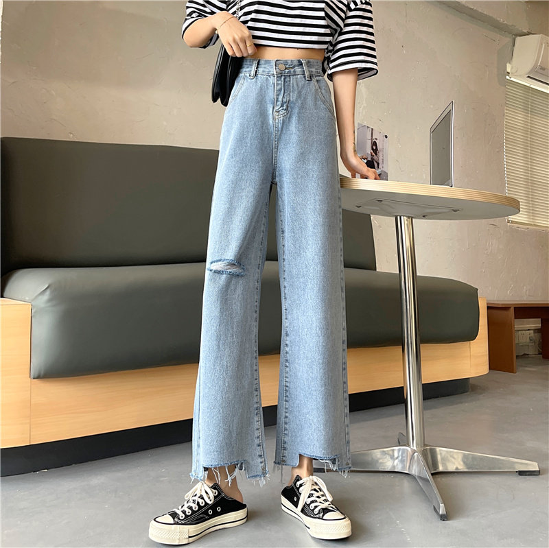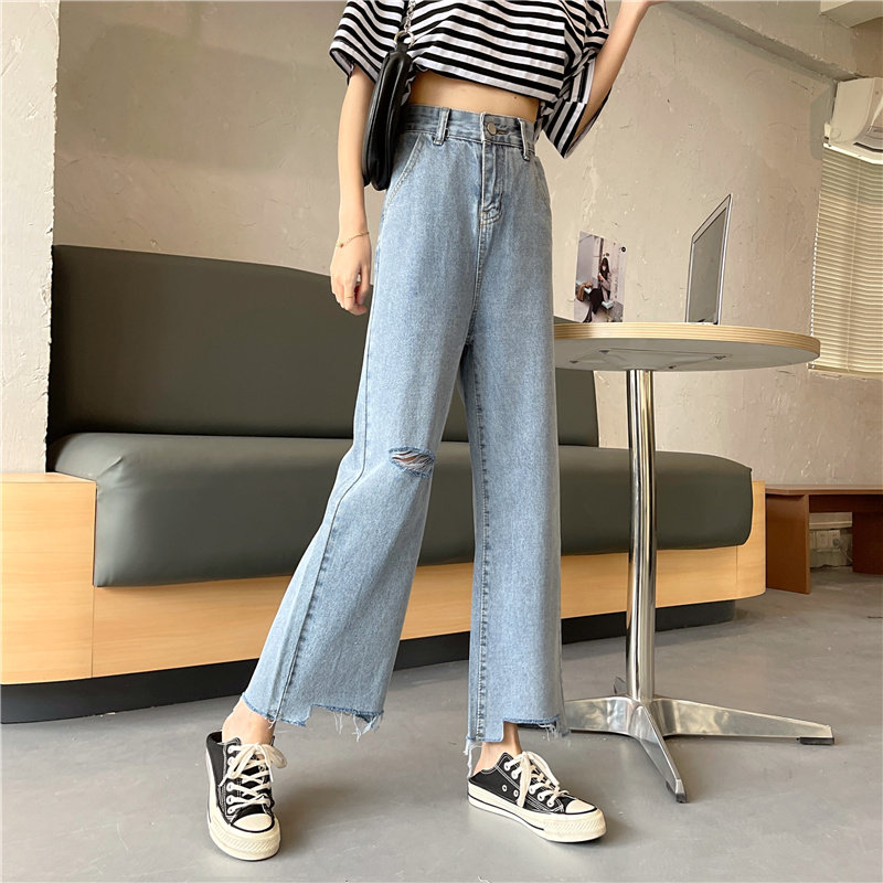 Весенние осенние джинсы, приталенные штаны, большой размер, высокая талия, свободный прямой крой
