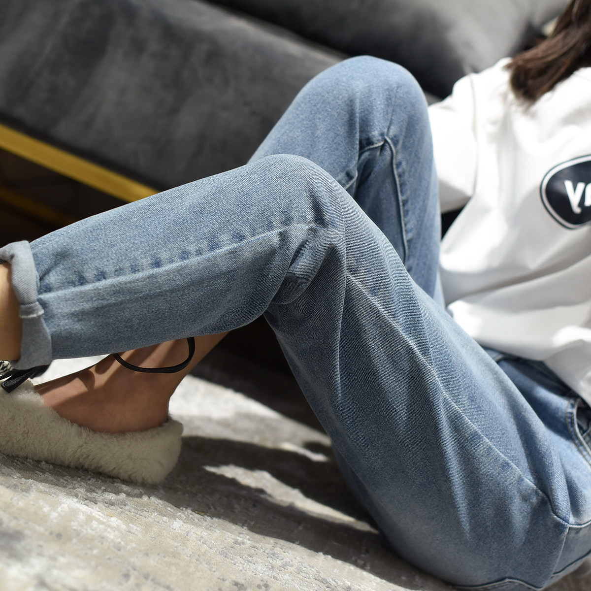 Штаны, осенние джинсы для отдыха, свободный крой, по фигуре, городской стиль