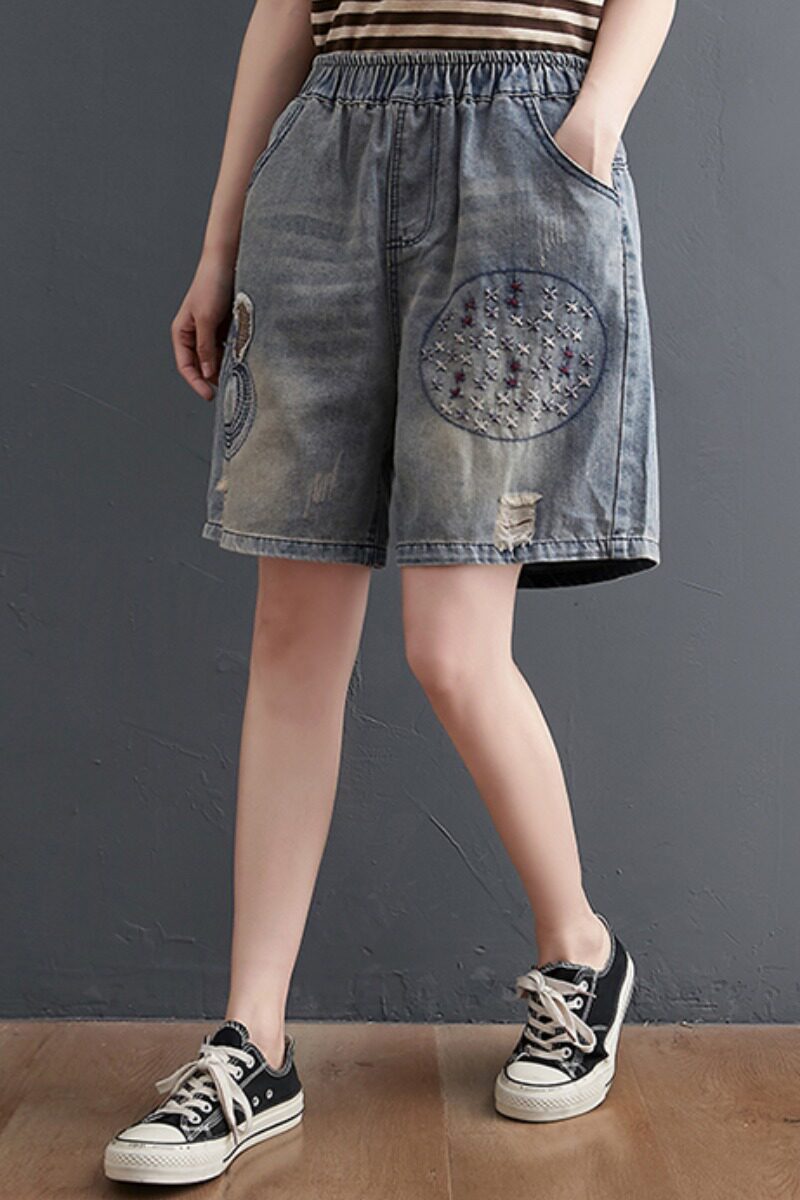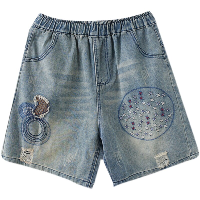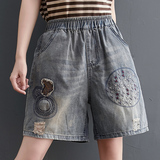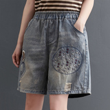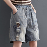 Ретро пластырь, джинсовая юбка, летние шорты, штаны, с вышивкой, новая коллекция, большой размер, свободный крой, А-силуэт