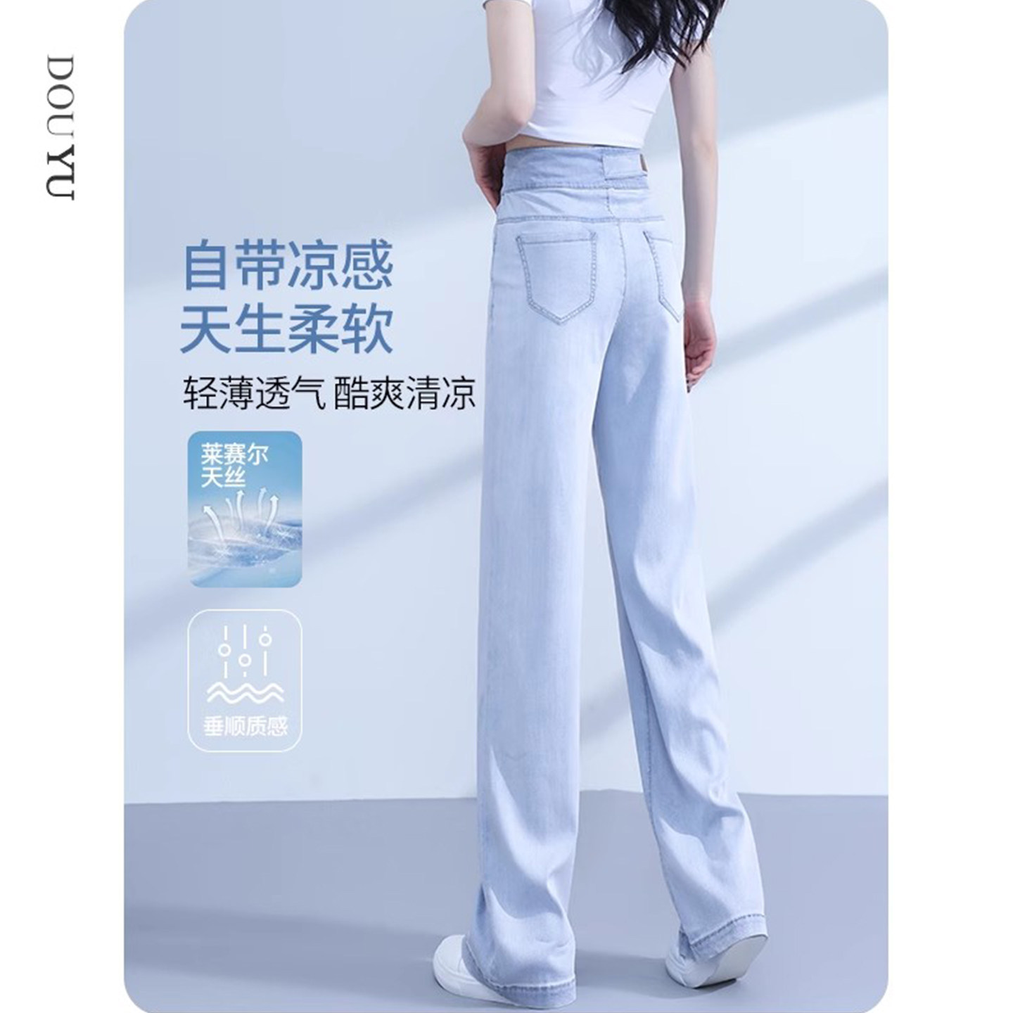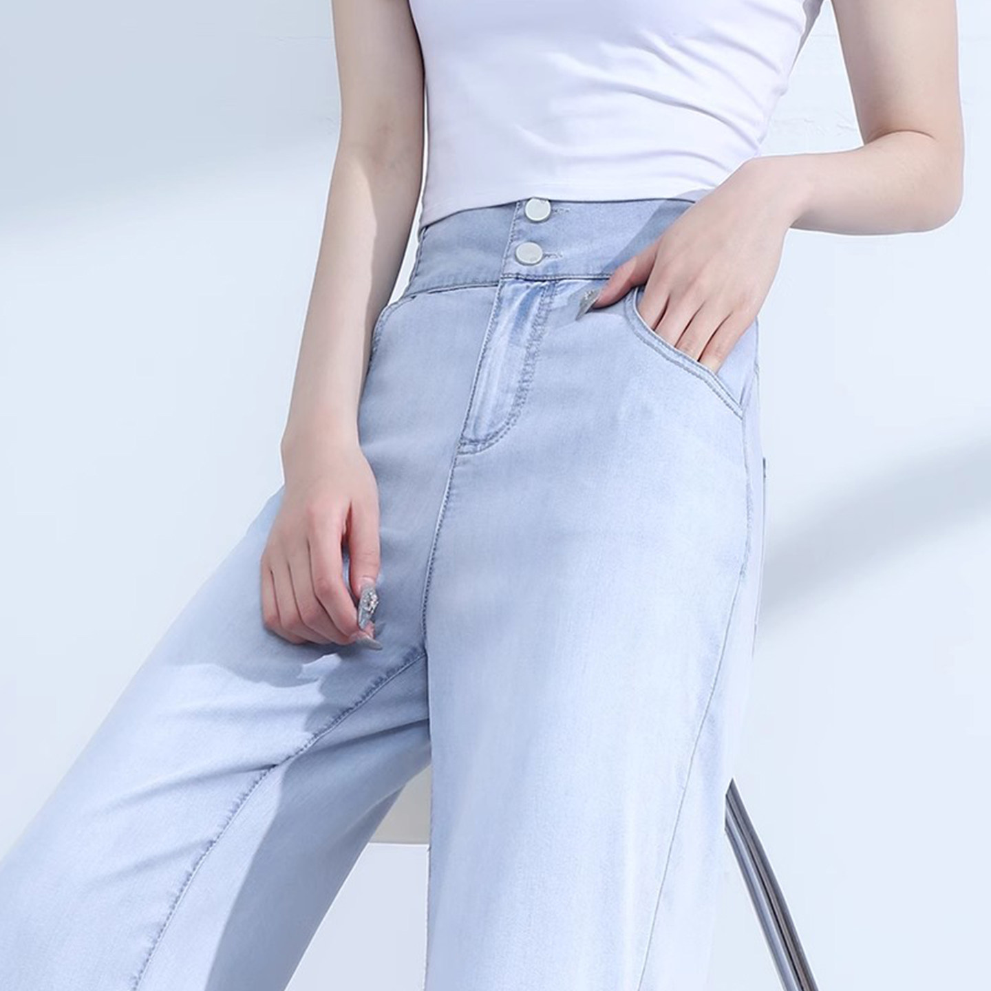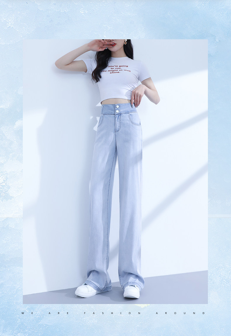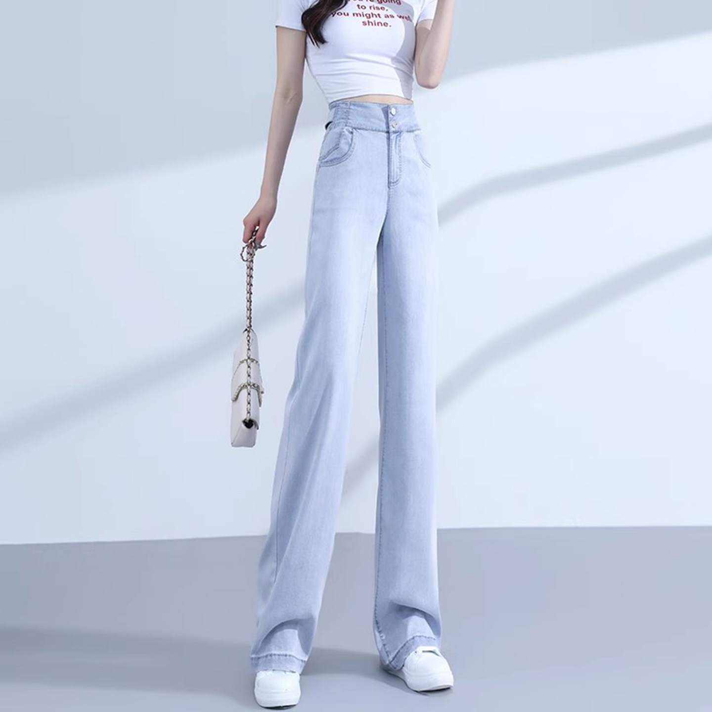 Светлые тонкие джинсы, штаны, высокая талия, свободный прямой крой, 2025 года
