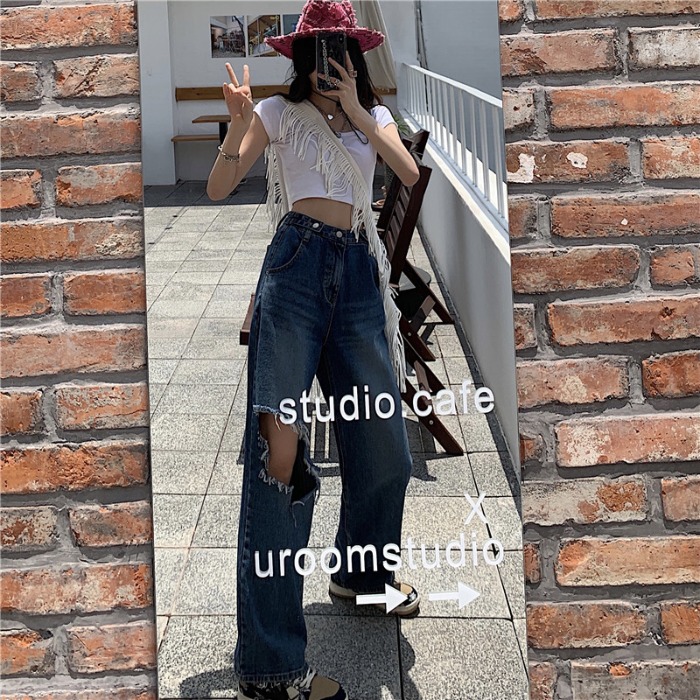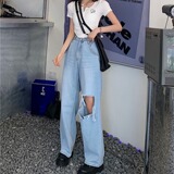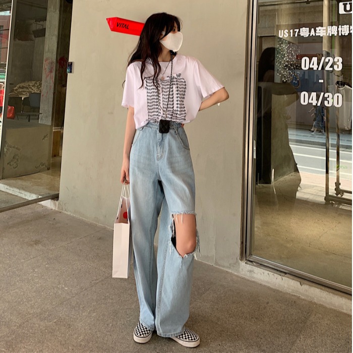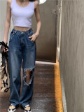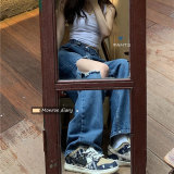 Ретро дизайнерские летние джинсы, штаны, в американском стиле, тренд сезона, оверсайз, высокая талия, свободный прямой крой