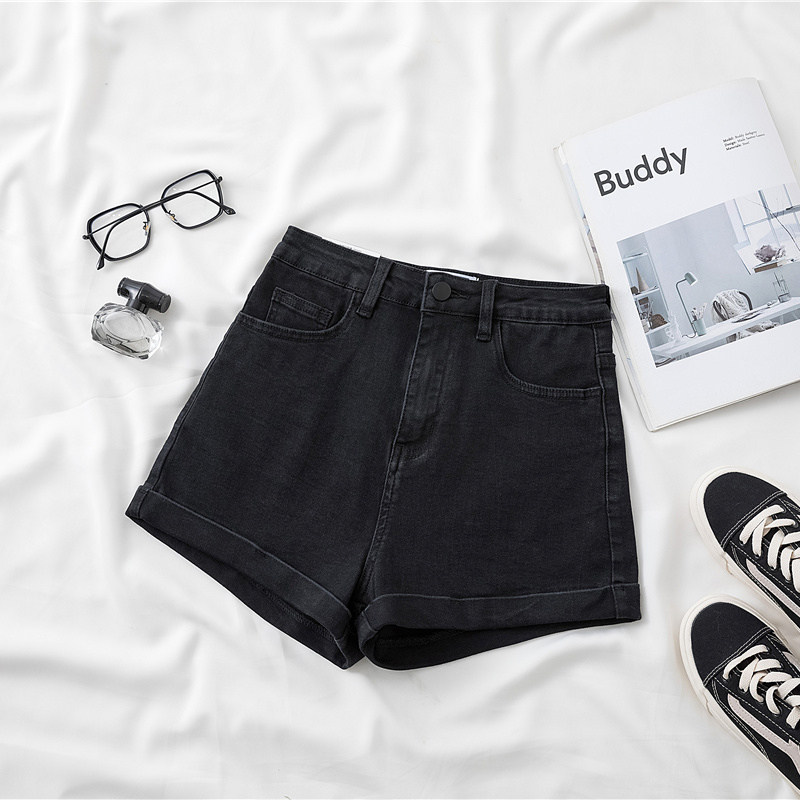 Черная цветная джинсовая юбка, шорты, тонкие штаны, высокая талия, по фигуре, свободный крой, А-силуэт