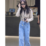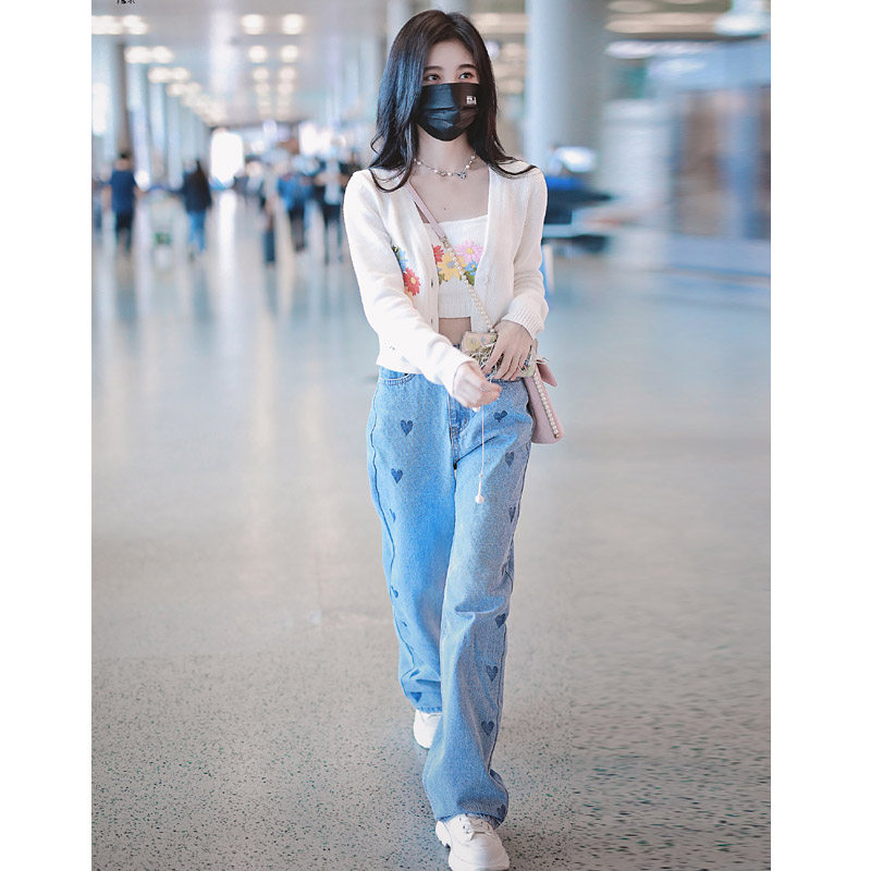 Нана, тонкие прямые свободные джинсы, штаны, оверсайз, высокая талия