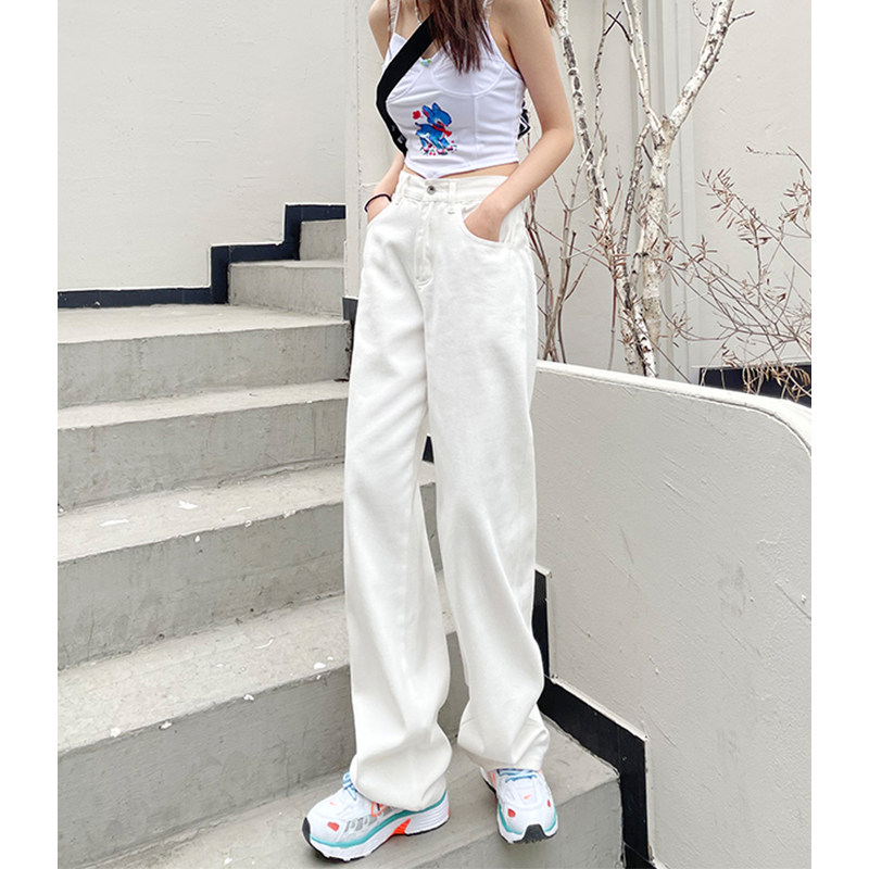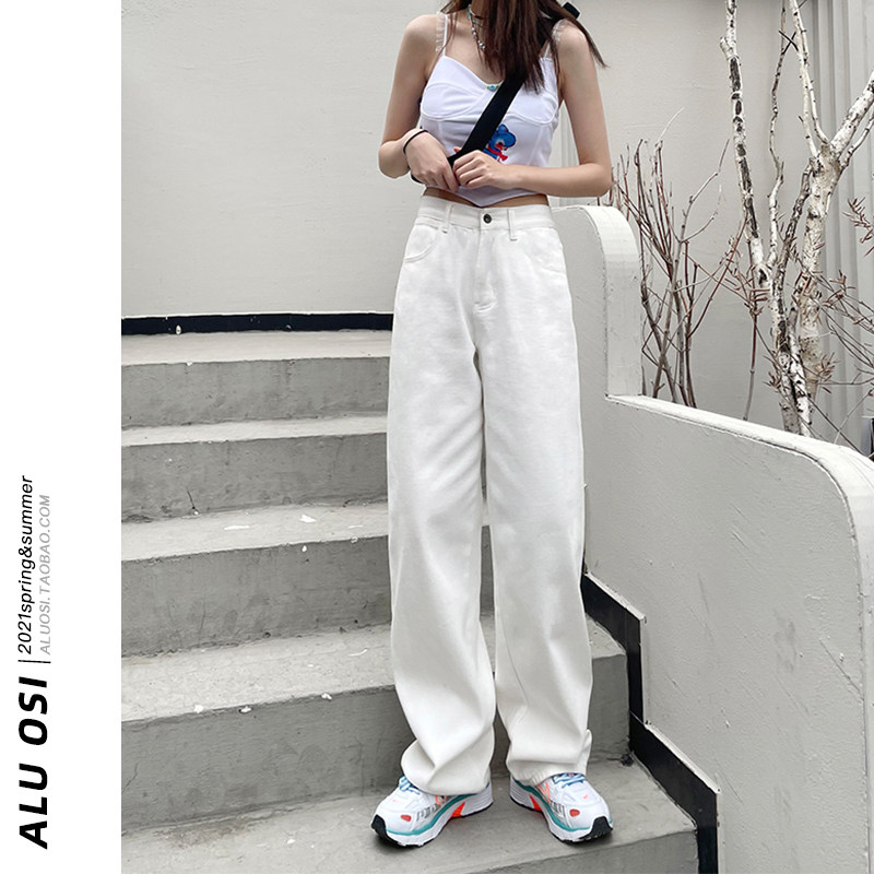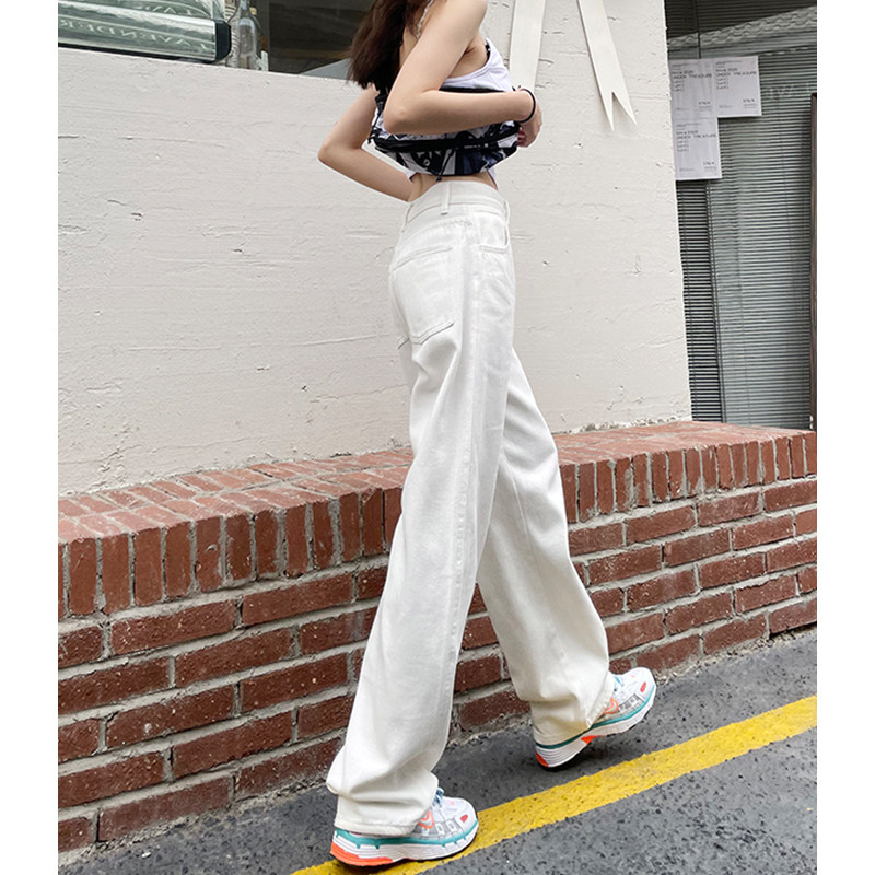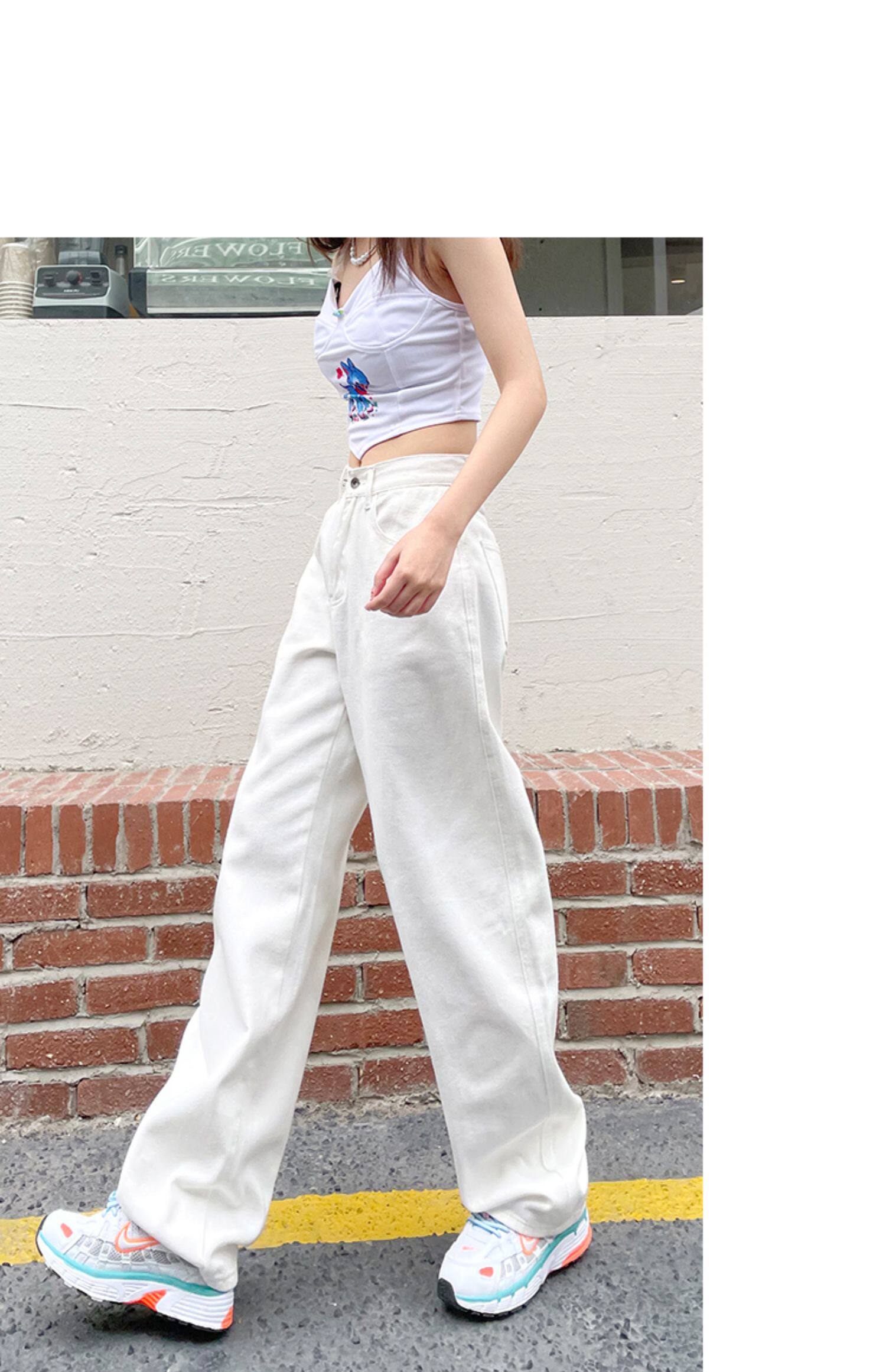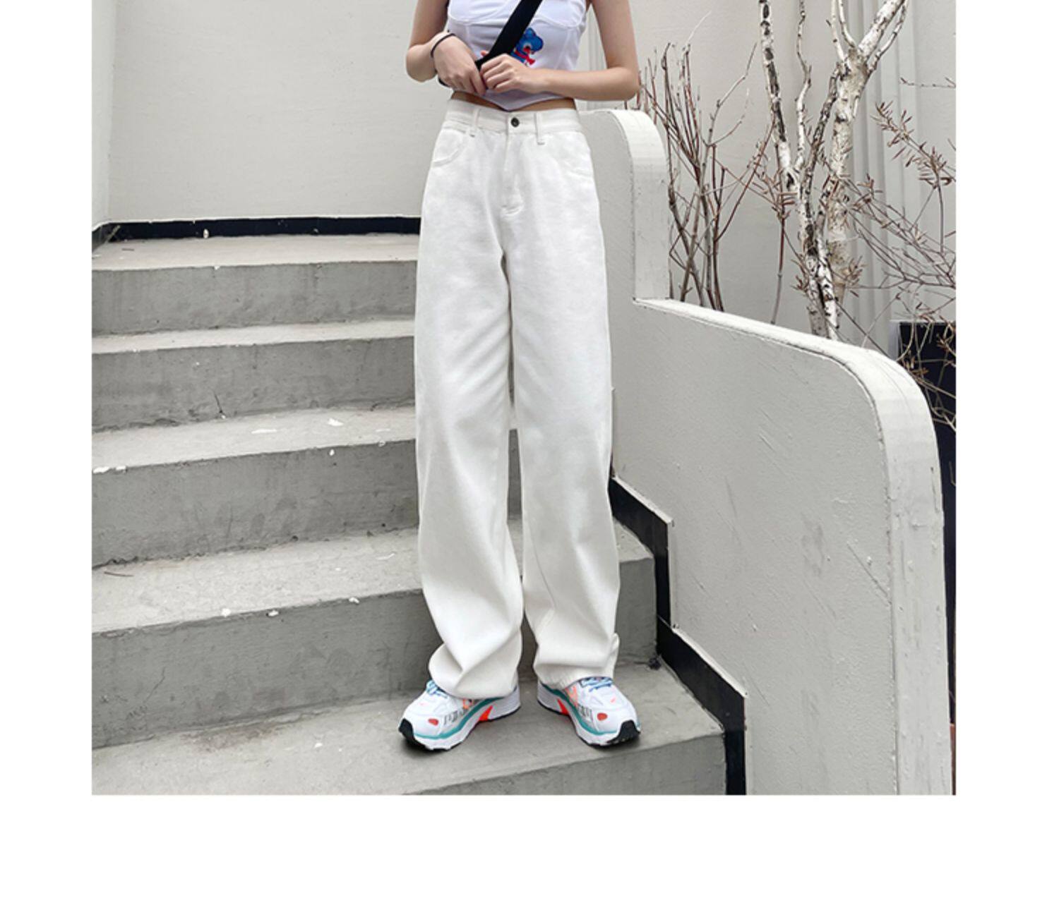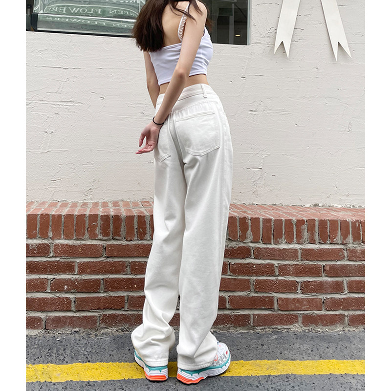 Белые осенние джинсы, демисезонные штаны, свободный прямой крой, высокая талия