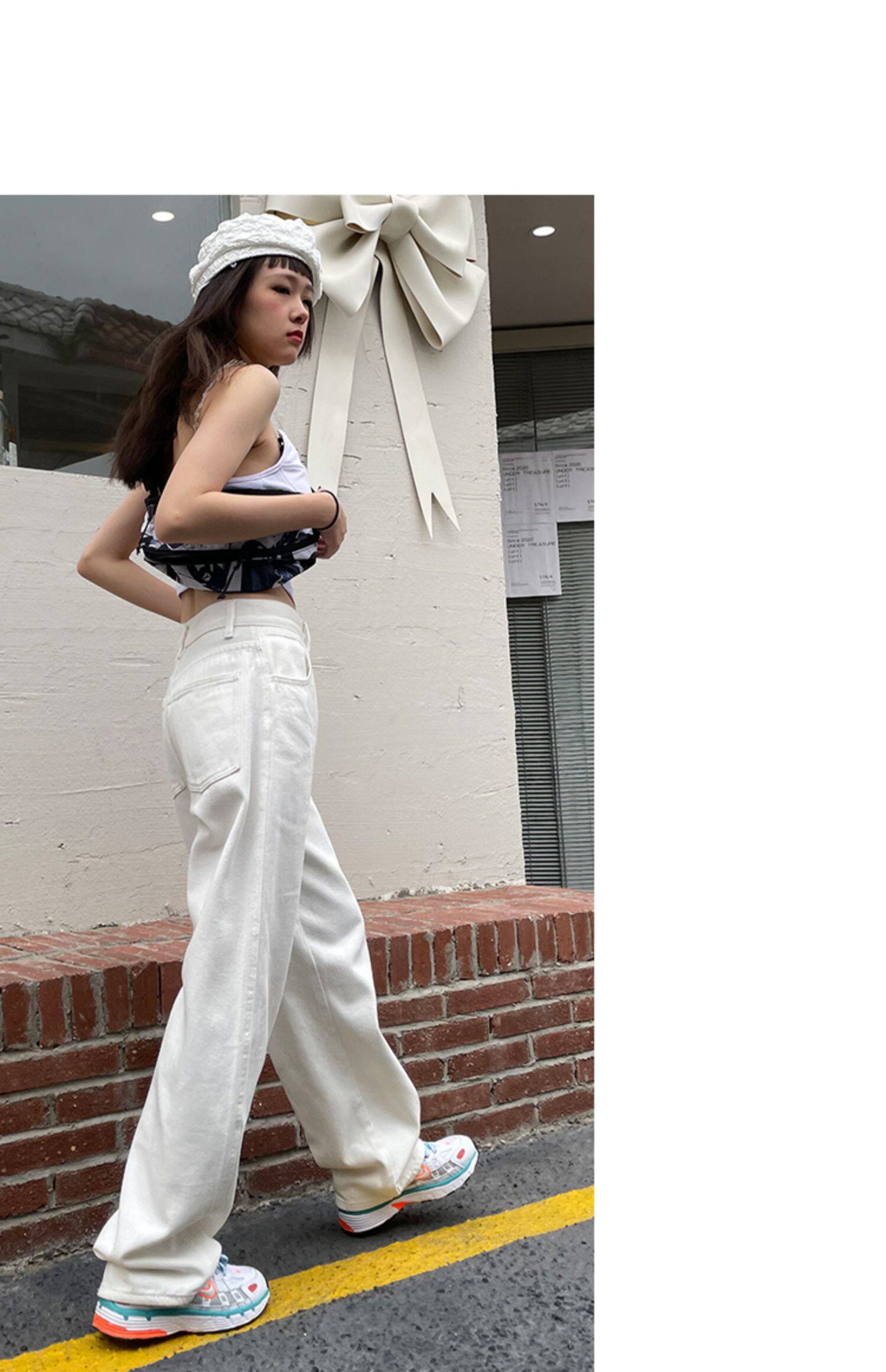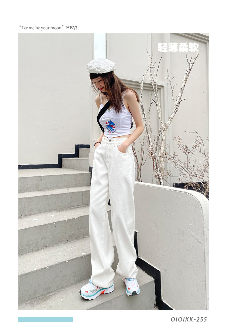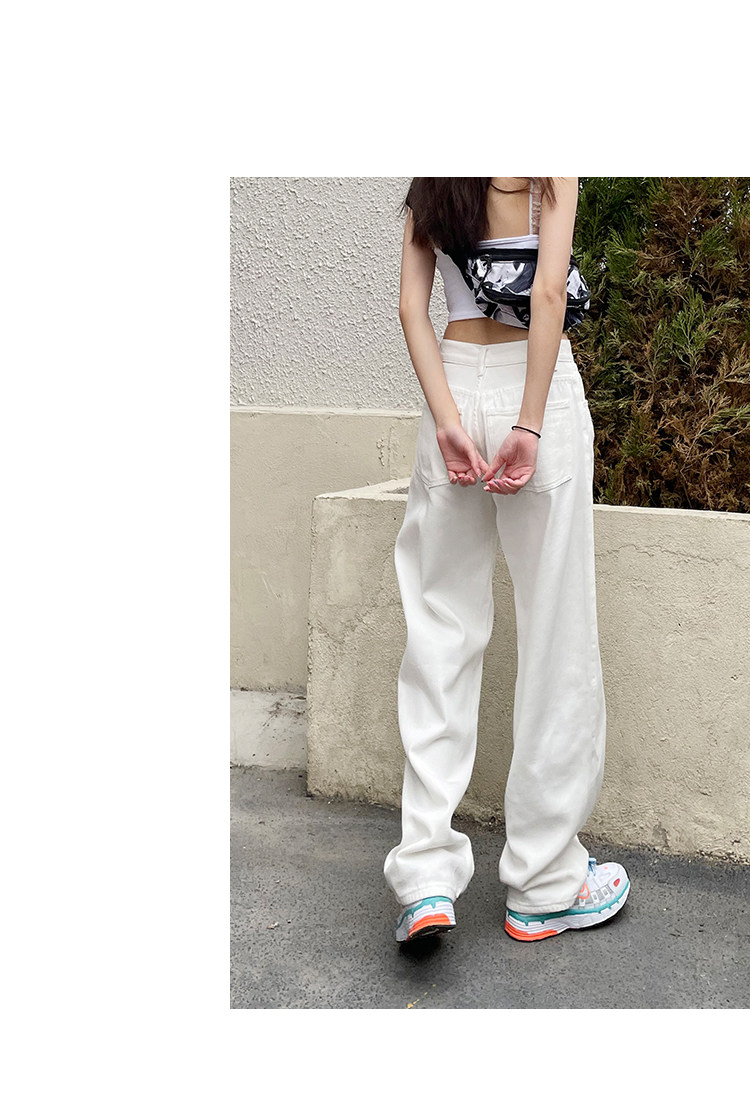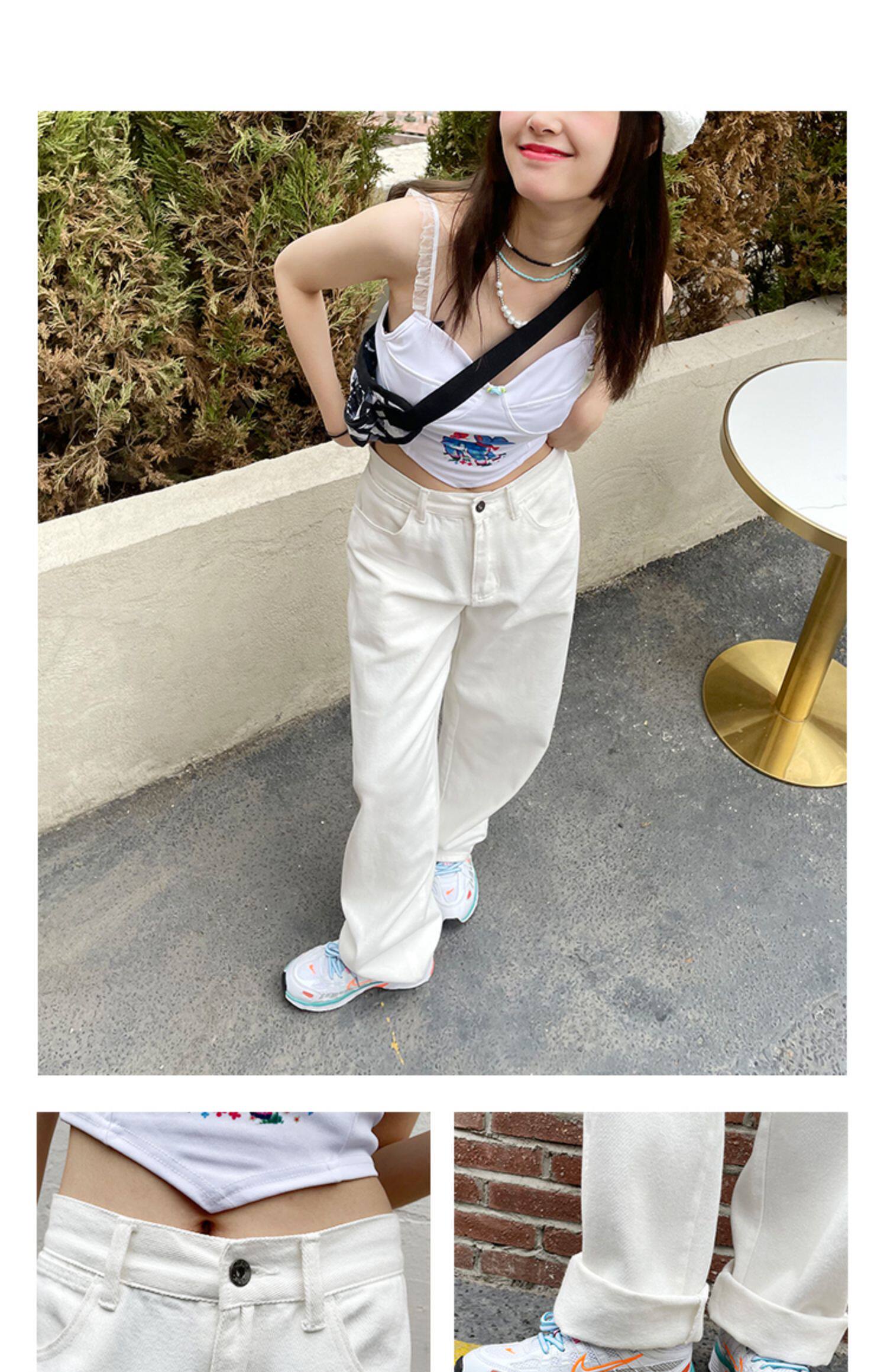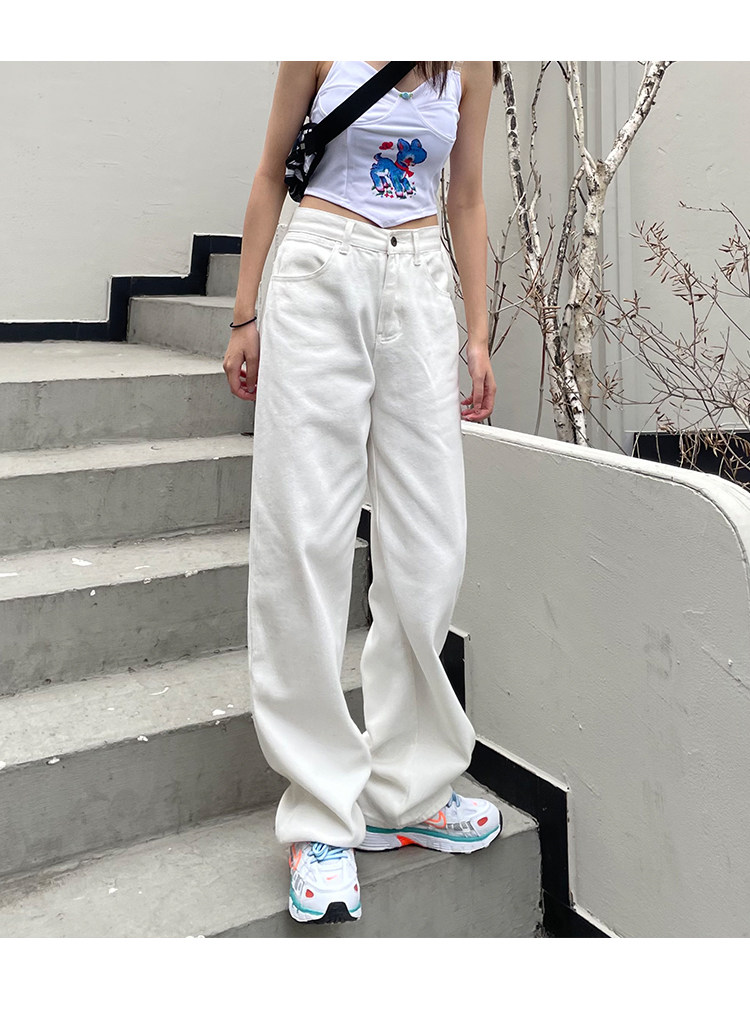 Белые осенние джинсы, демисезонные штаны, свободный прямой крой, высокая талия