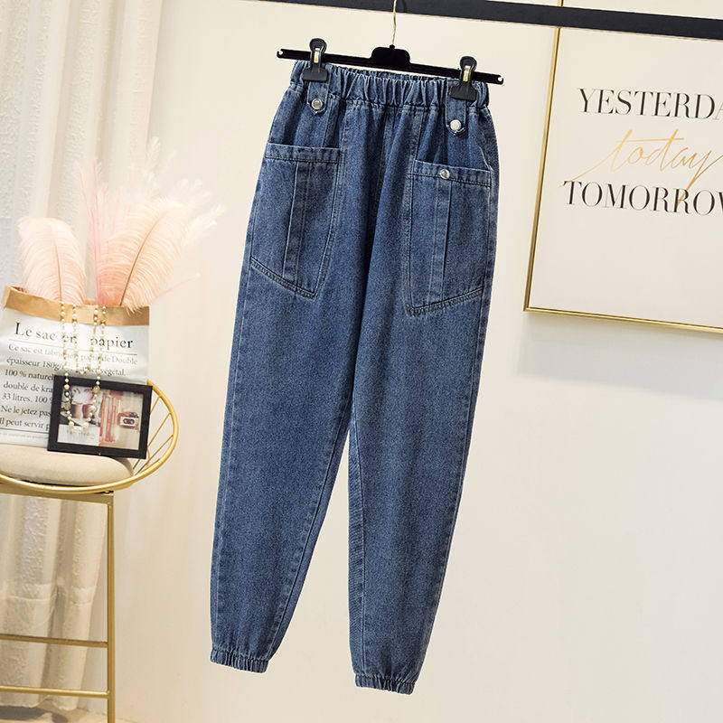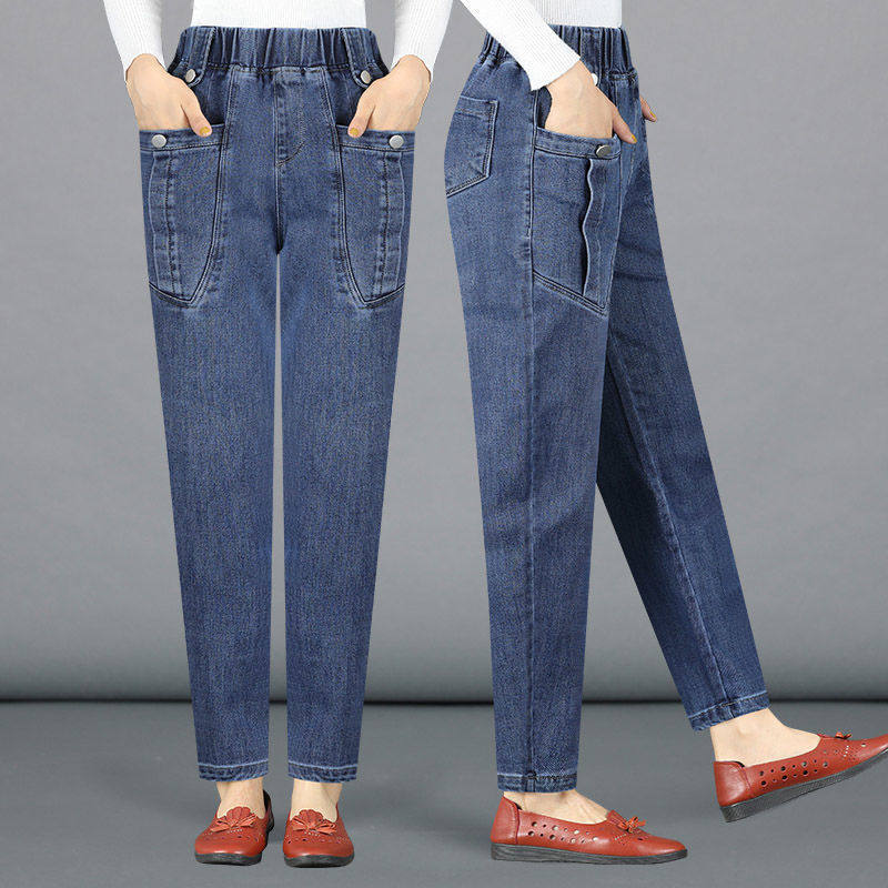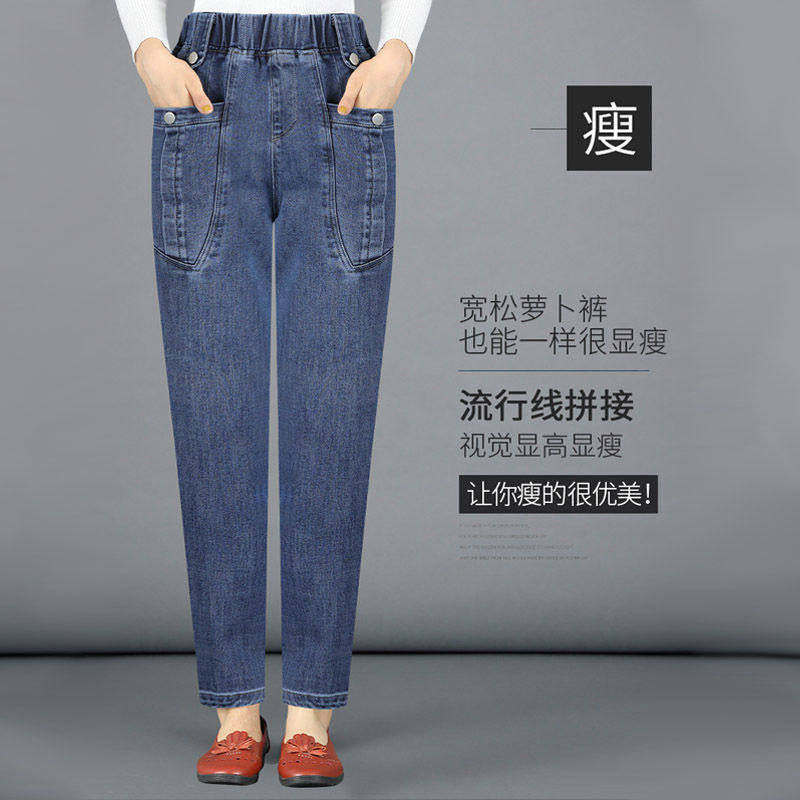 Джинсы, демисезонные штаны для матери для отдыха, высокая талия, большой размер