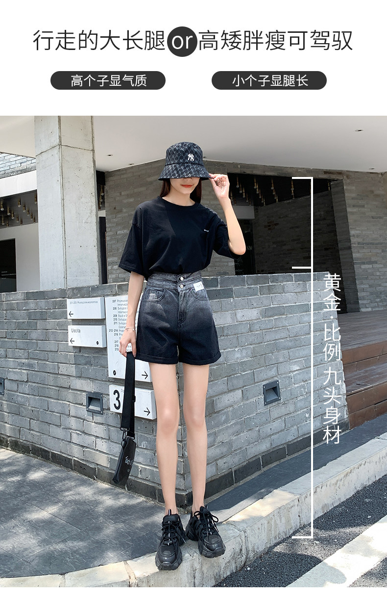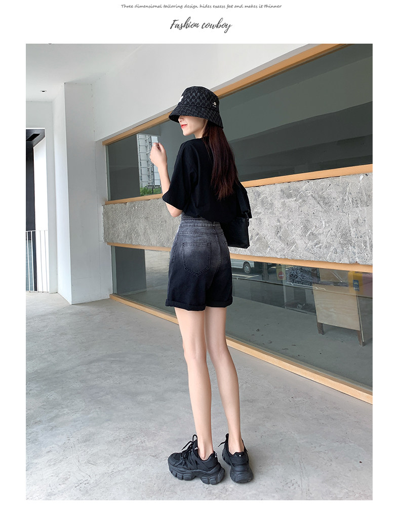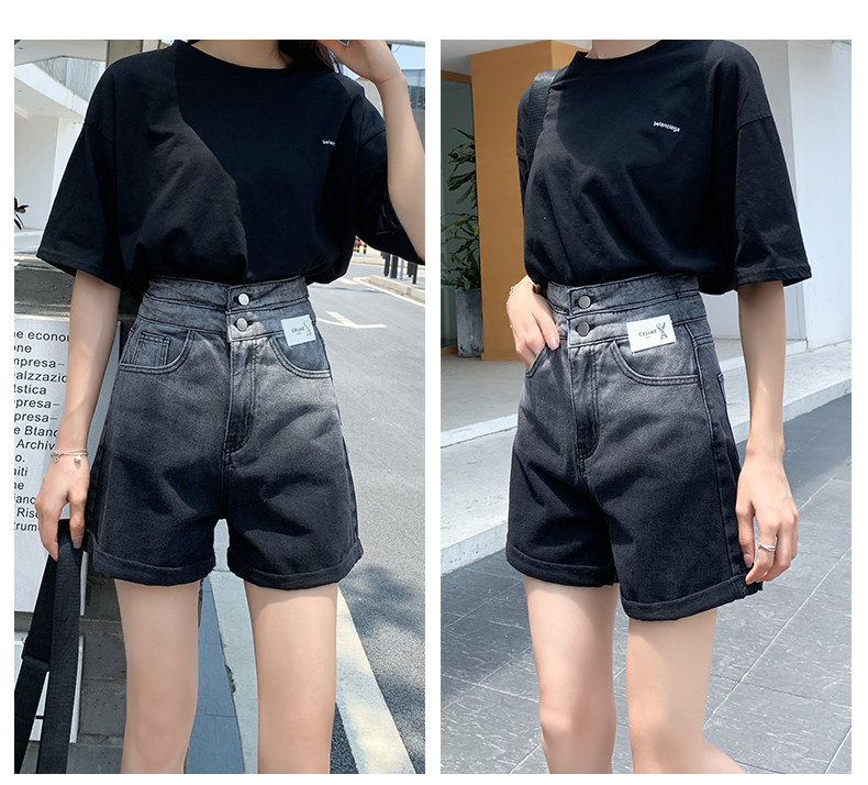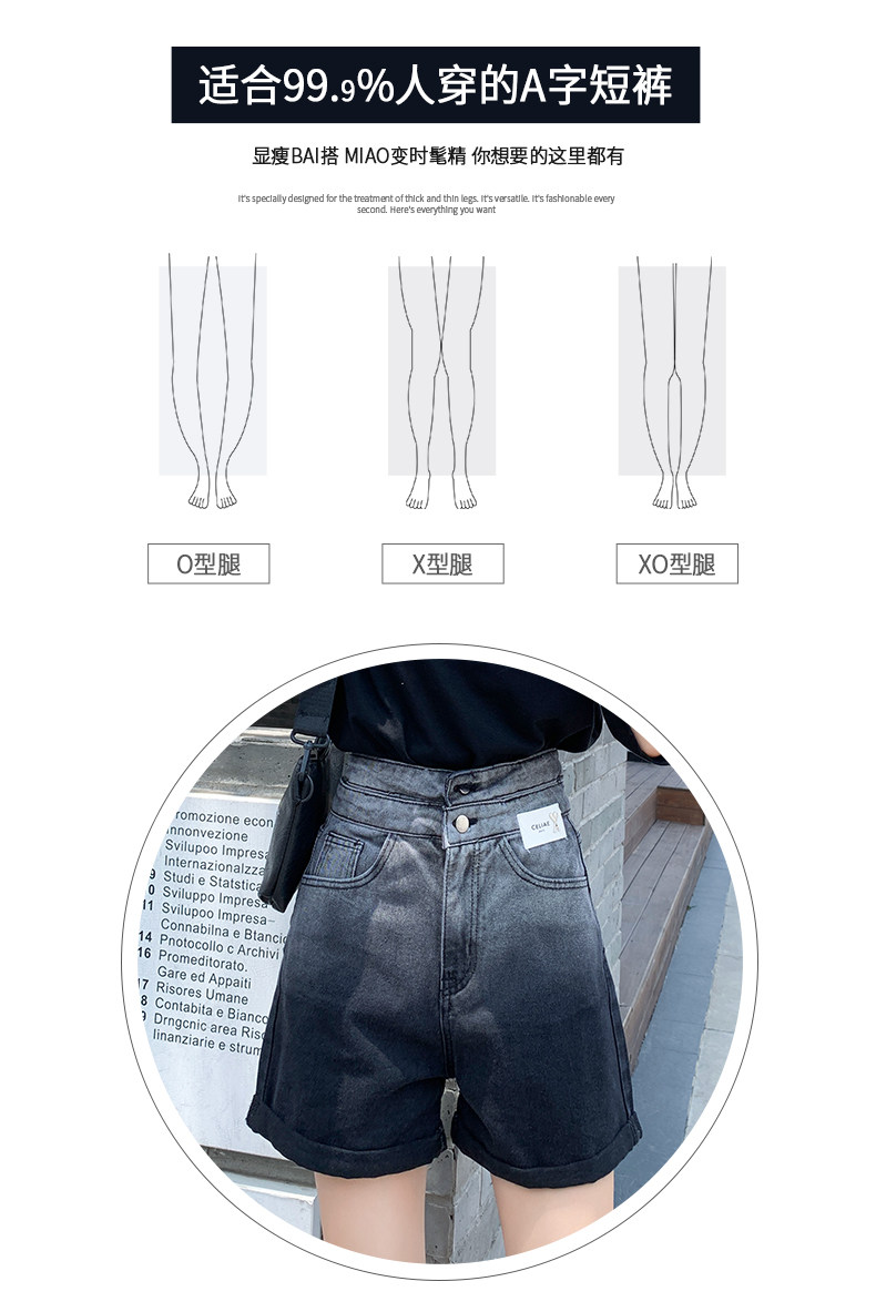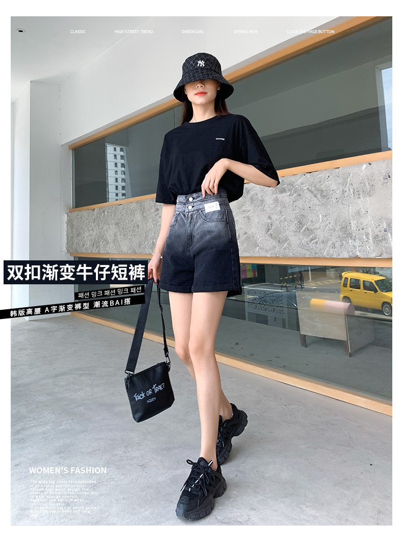 Черная цветная джинсовая юбка, шорты, тонкие штаны, градиент, высокая талия, коллекция 2022, свободный прямой крой, А-силуэт