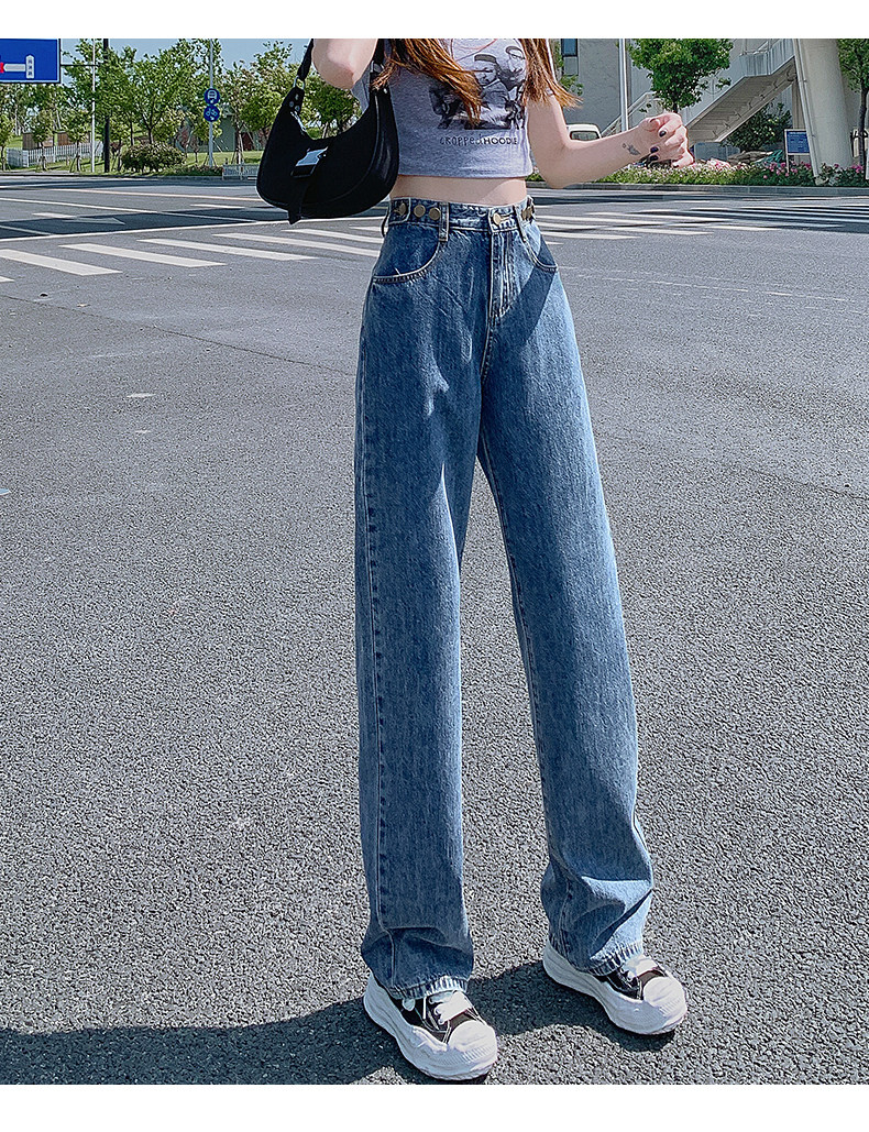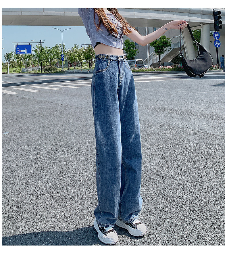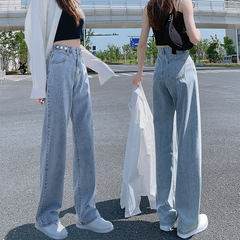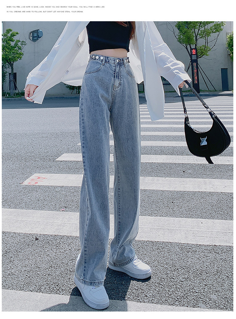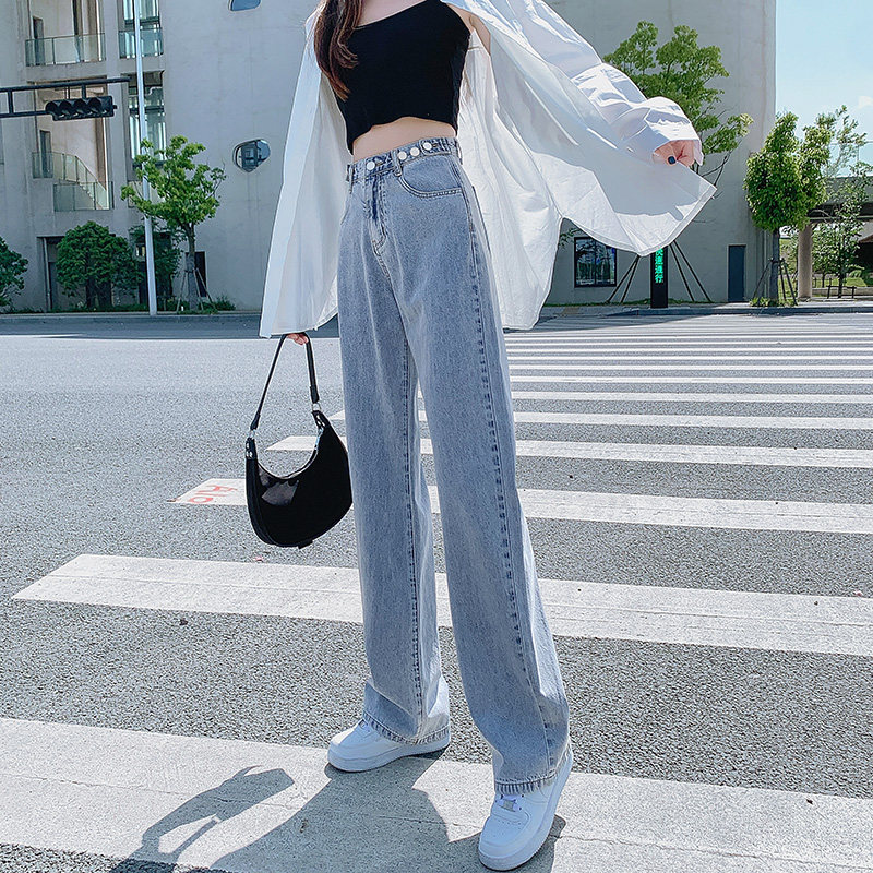 Штаны, джинсы, высокая талия, популярно в интернете, свободный прямой крой, осенние