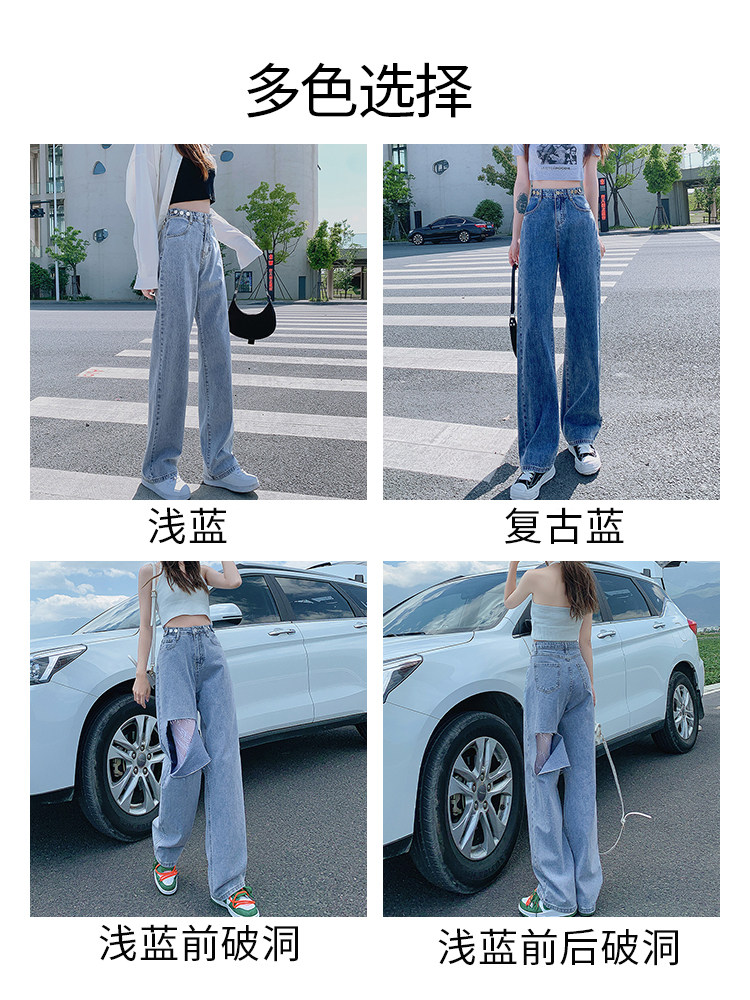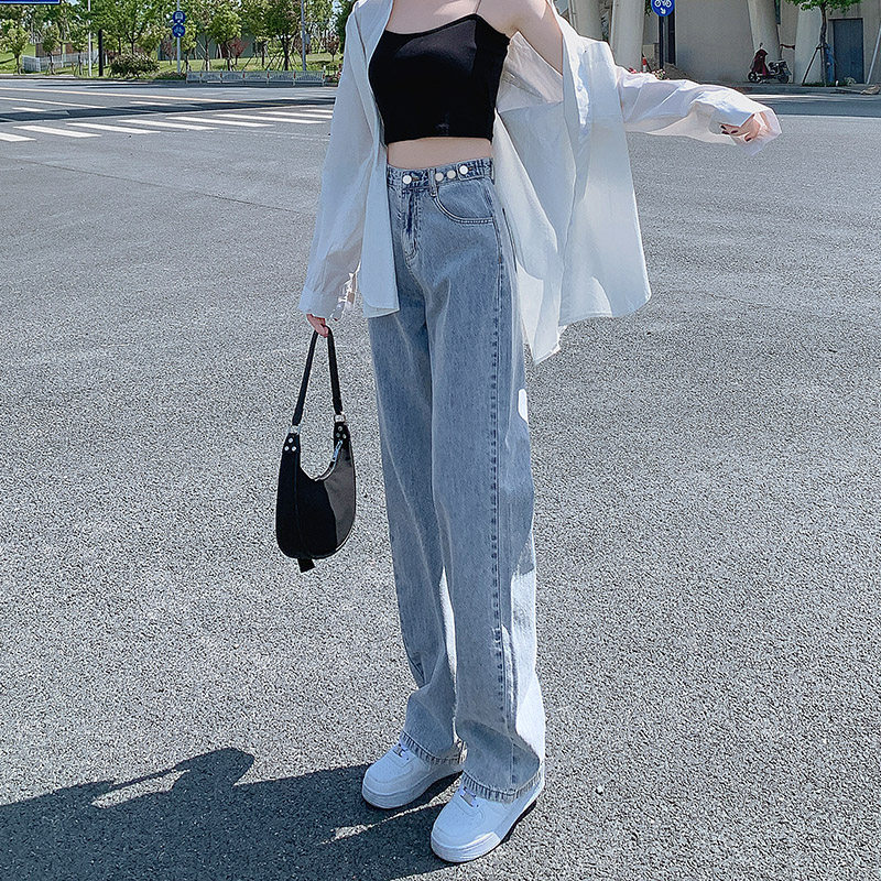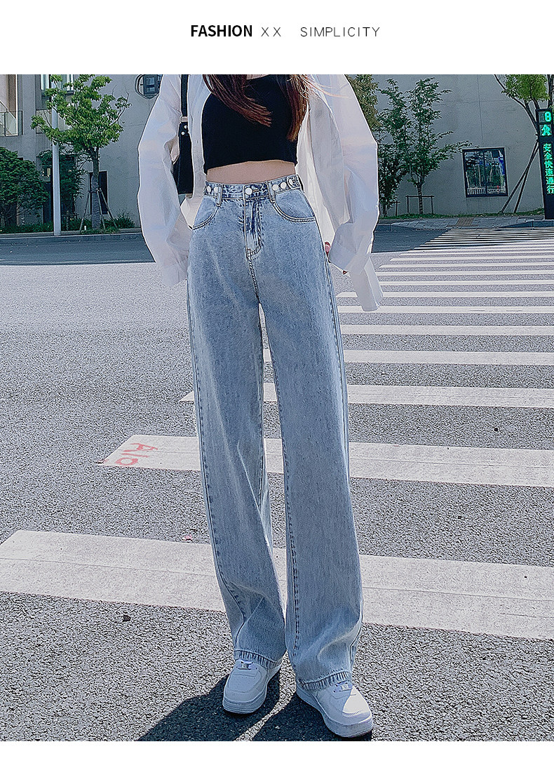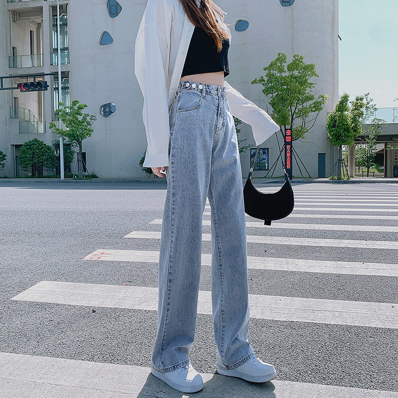 Штаны, джинсы, высокая талия, популярно в интернете, свободный прямой крой, осенние