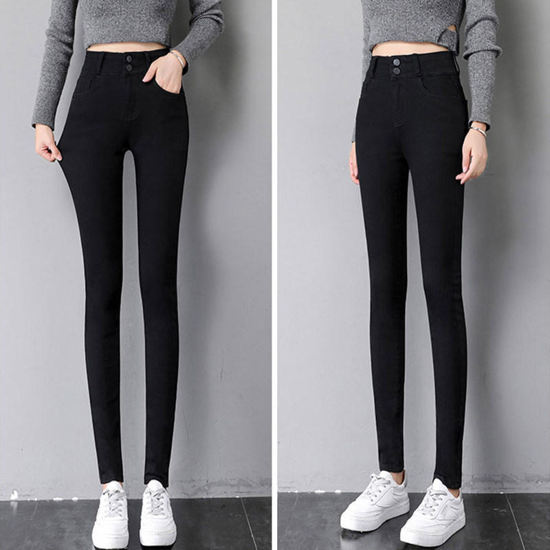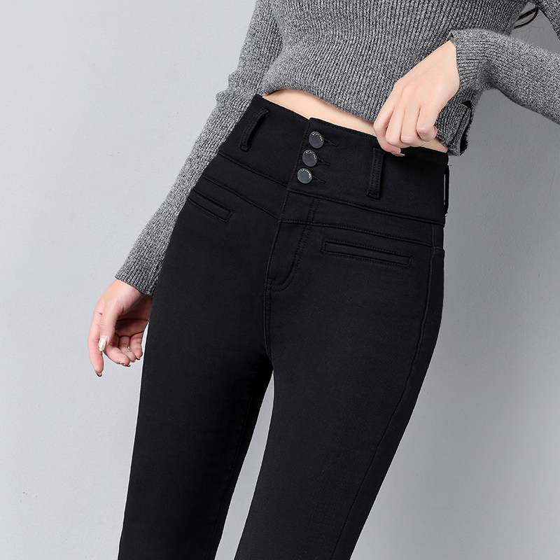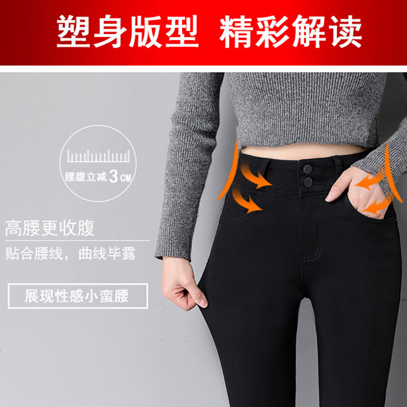 Джинсы, демисезонные приталенные штаны, эластичный универсальный флисовый утягивающий пояс на талию, белье для коррекции формы бедер, карандаш, облегающий крой
