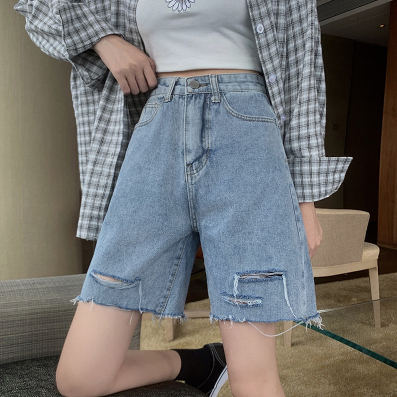 Летние вместительные и большые джинсы, штаны, шорты, большой размер, свободный прямой крой, высокая талия