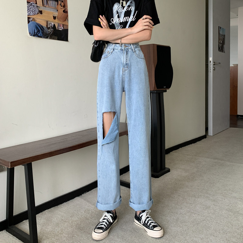 Осенние джинсы, тонкие приталенные штаны, свободный прямой крой, высокая талия, большой размер